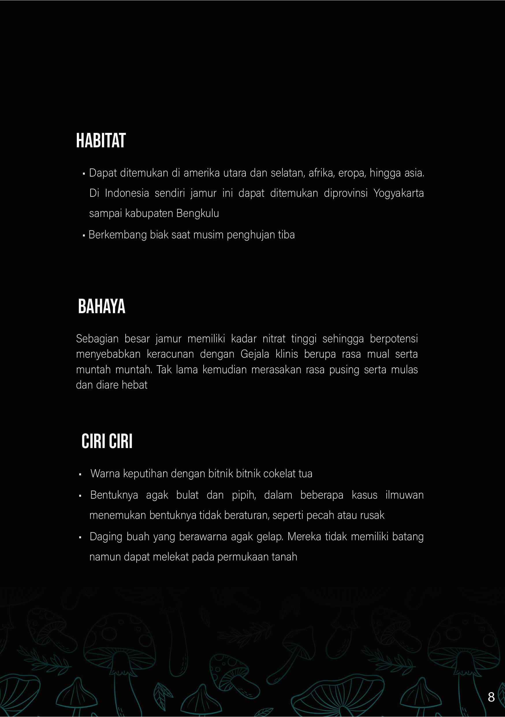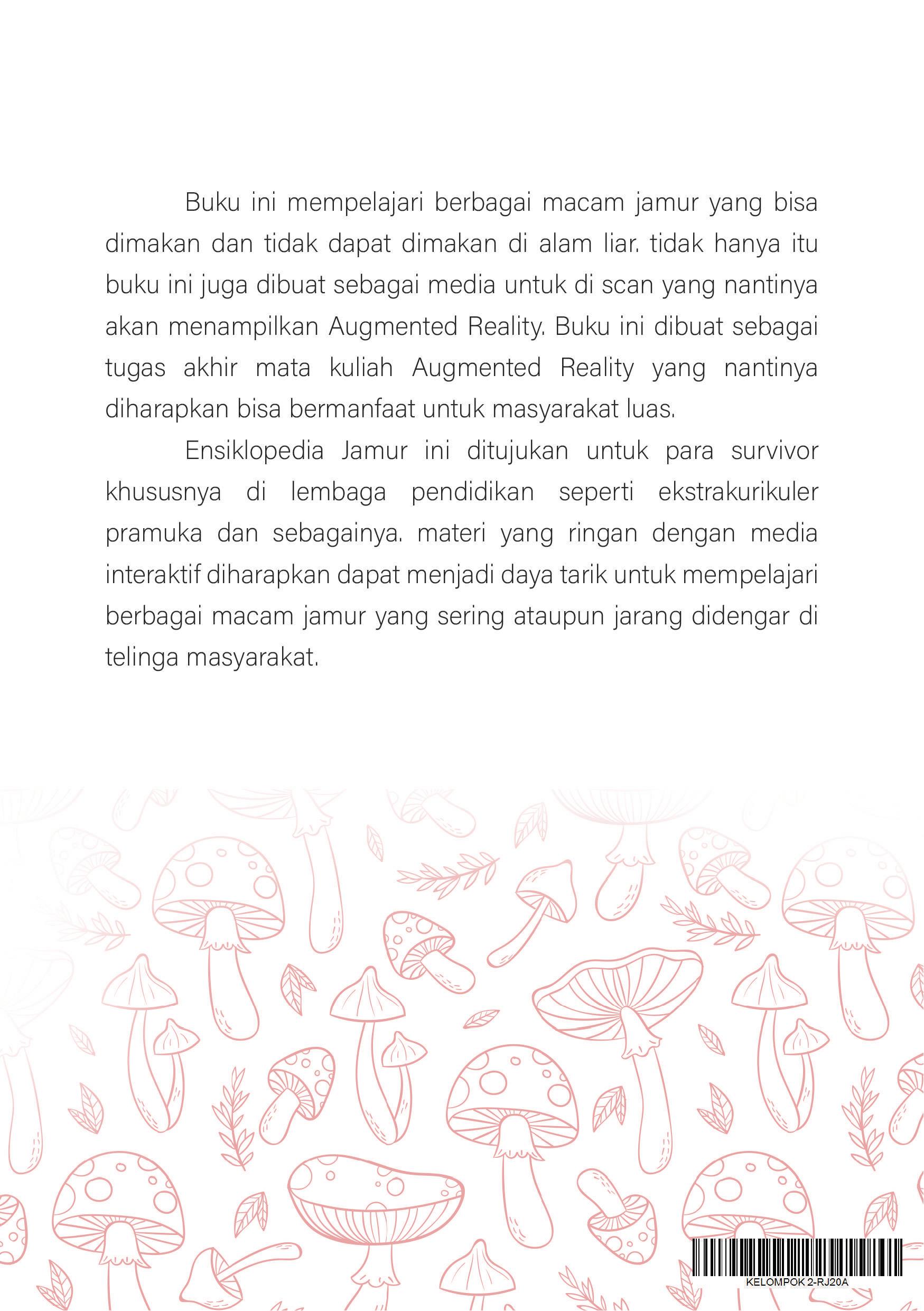 Buku ini mempelajari berbagai macam jamur yang bisa dimakan dan tidak dapat dimakan di alam liar. tidak hanya itu buku ini juga dibuat sebagai media untuk di scan yang nantinya akan menampilkan Augmented Reality. Buku ini dibuat sebagai tugas akhir mata kuliah Augmented Reality yang nantinya diharapkan bisa bermanfaat untuk masyarakat luas.