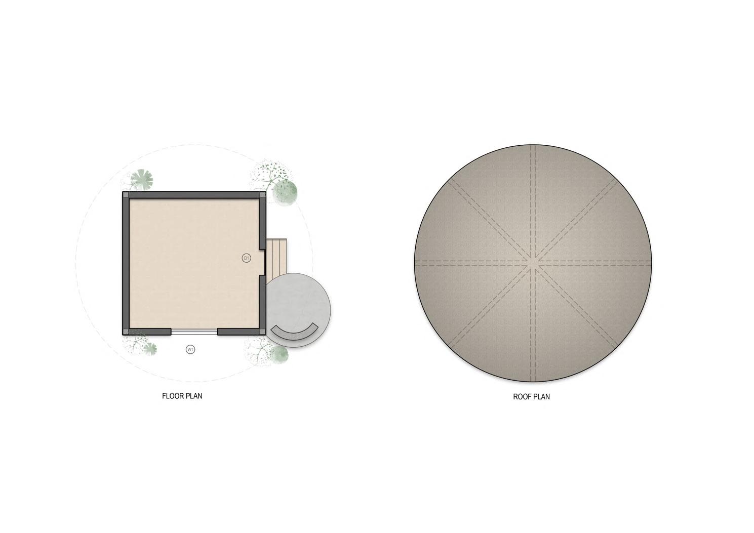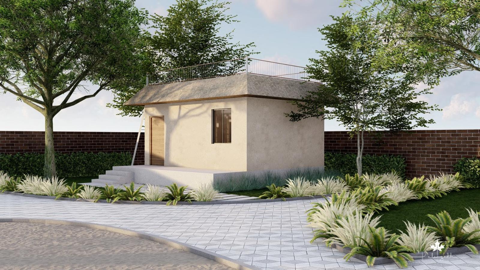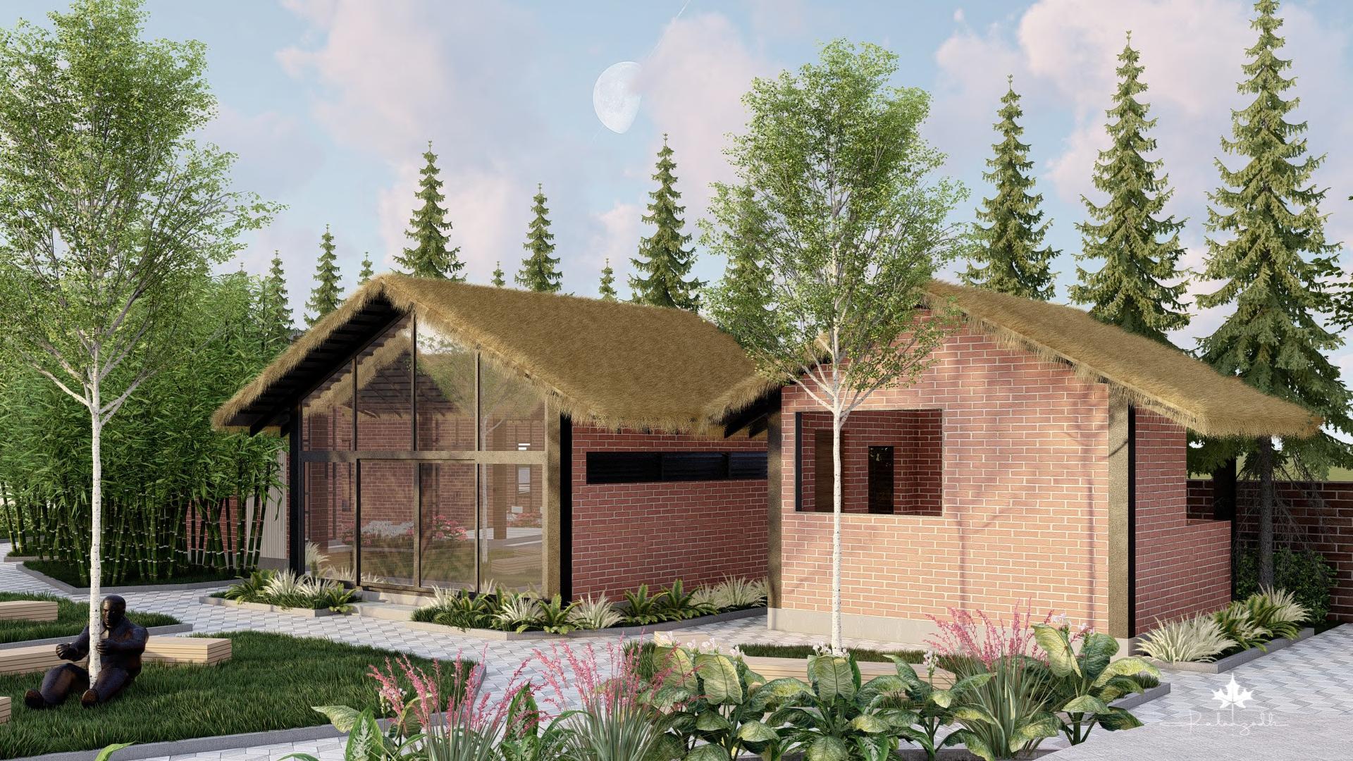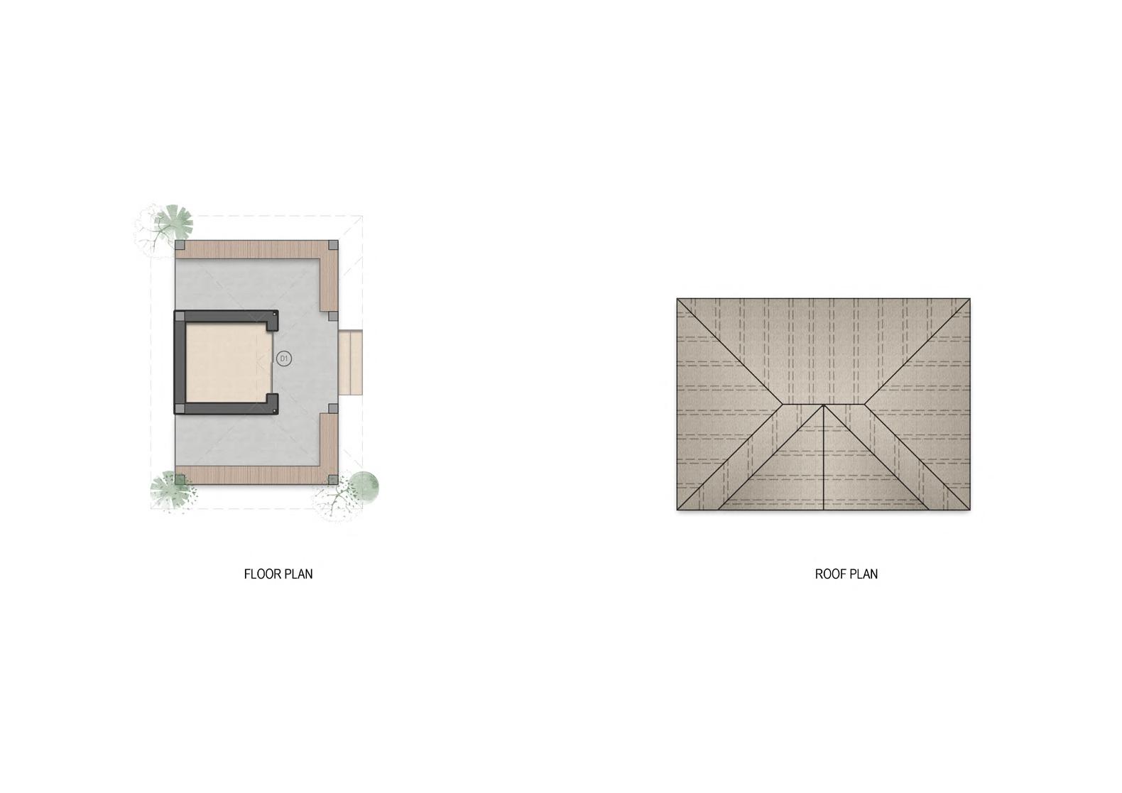 A pergola is extended from the roof to mark the entrance, provide greendery and to shelter from rain.
