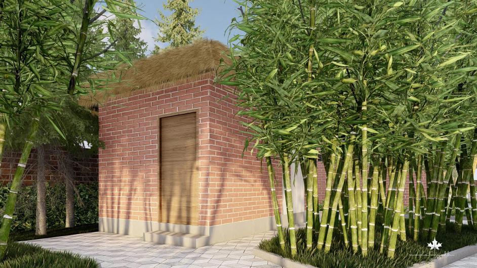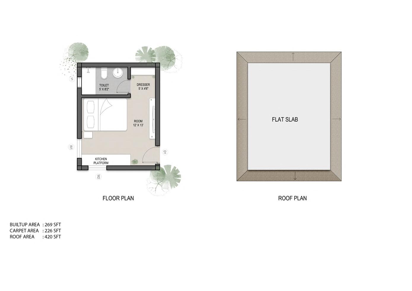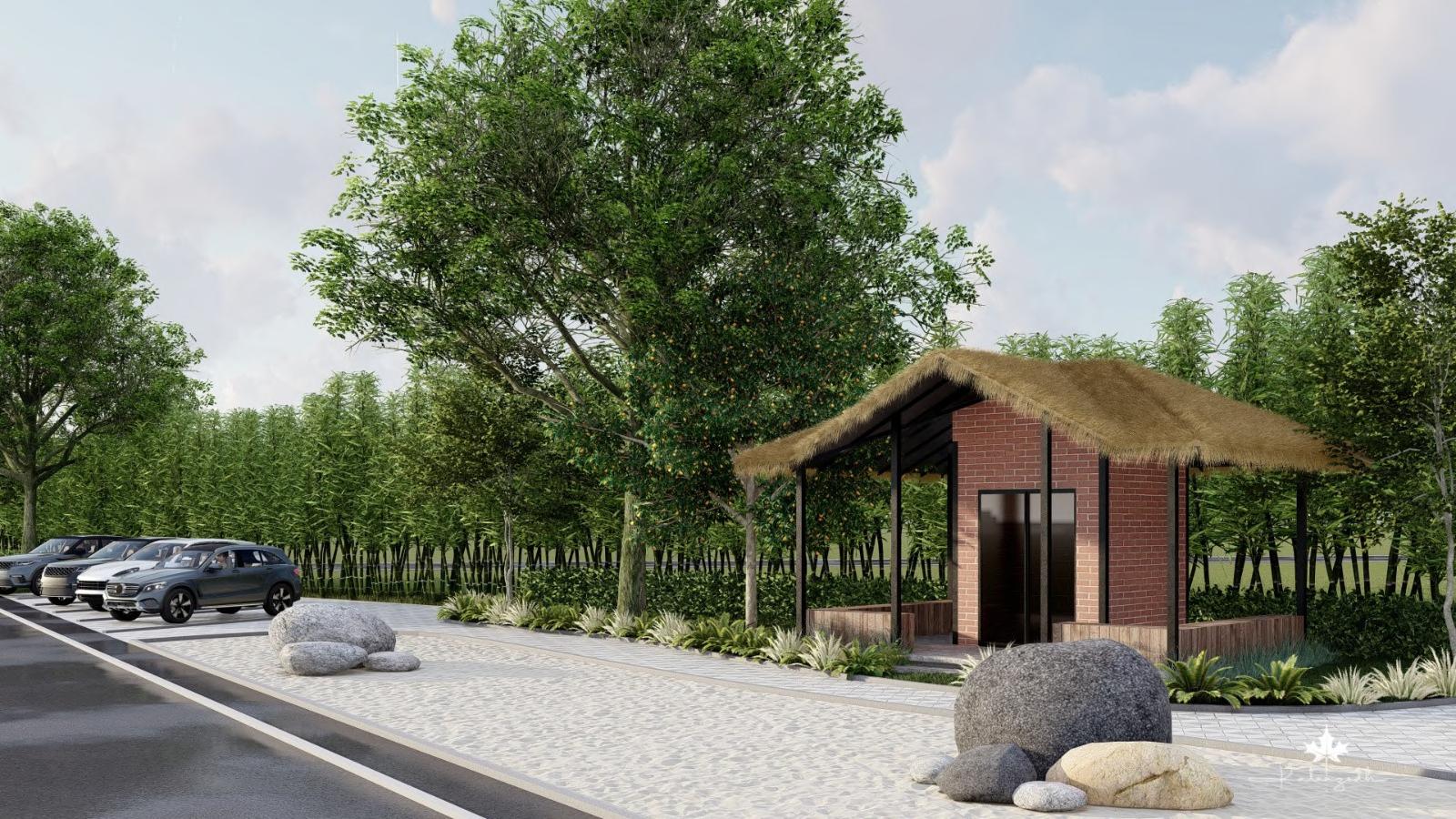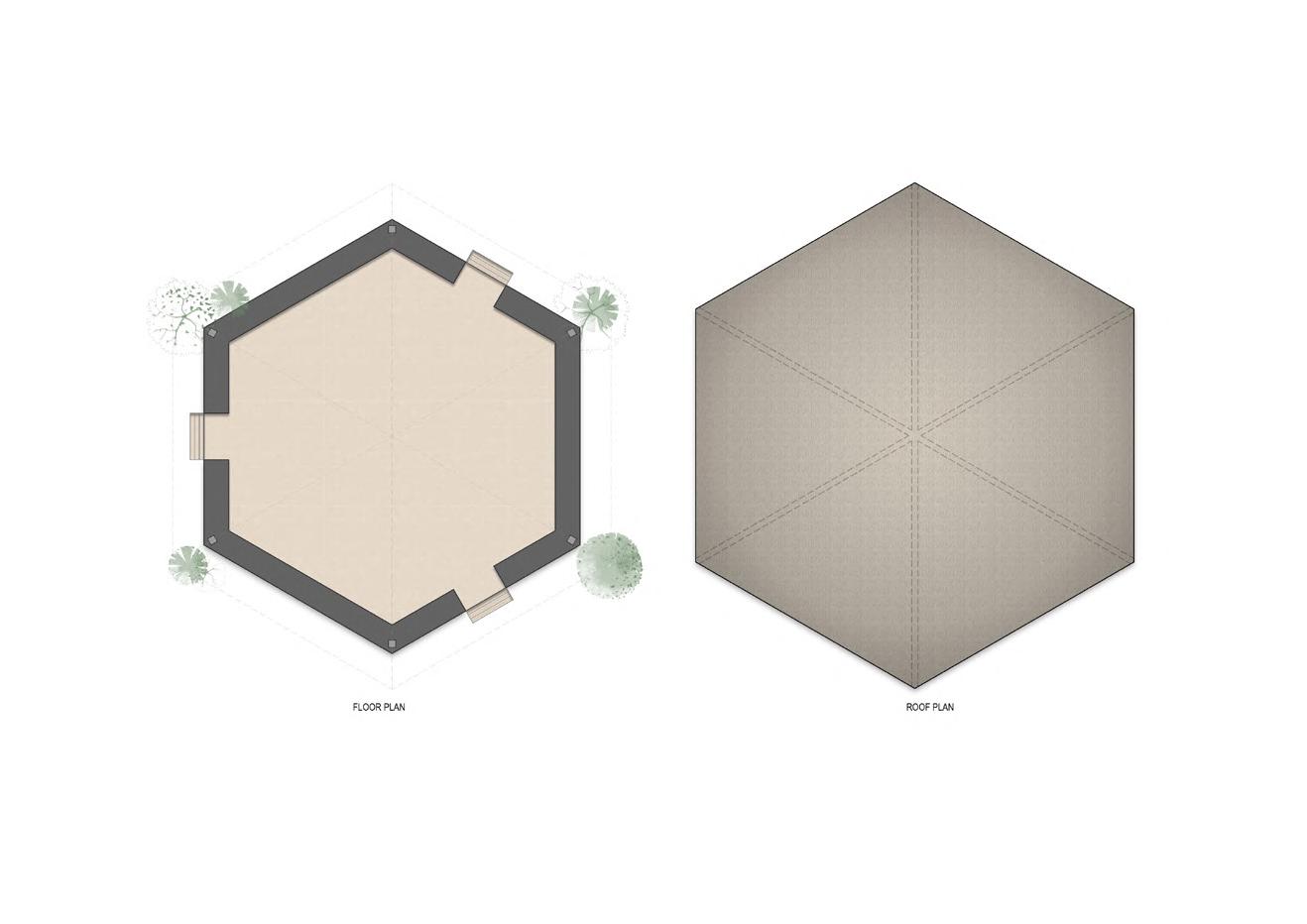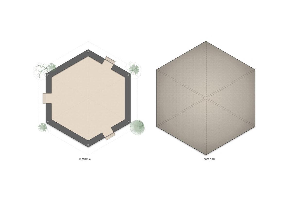 A pergola is extended from the roof to mark the entrance, provide greendery and to shelter from rain.