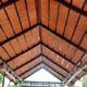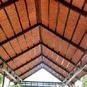 The buildings are connected through a central passage. It is a roofed colonnade with wood lattice walls. It serves as rain protection but lets the wind pass through, and functions as a soft barrier between humans and horses.