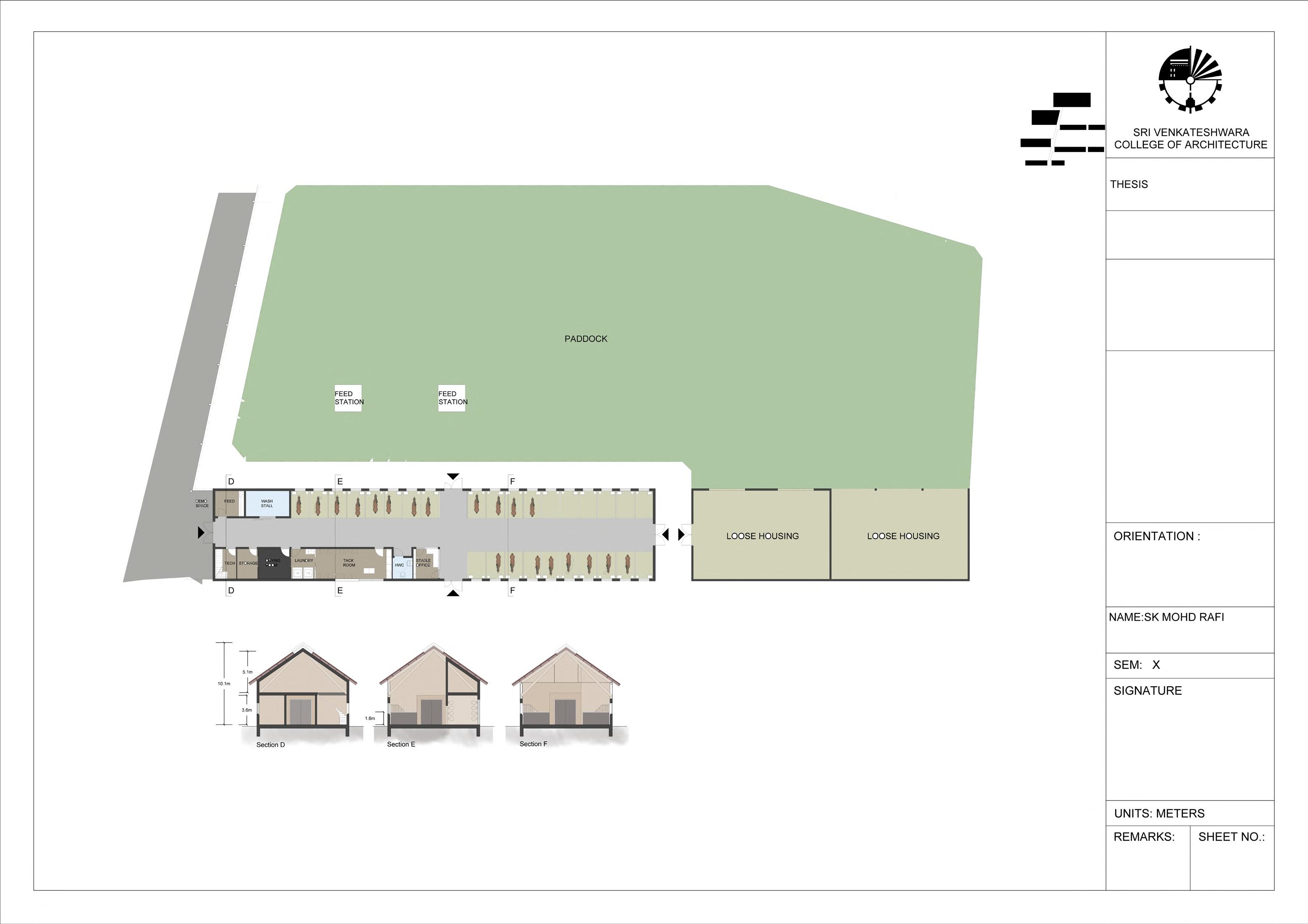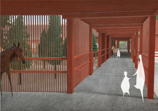passage are connected central passage. It colonnade with walls. It serves protection but lets through, and soft barrier humans and horses. horse zones passage divides two zones, one one for human protects the disturbances and reminder of the horses. between the forms courtyards used for different paddocks and as outdoor entrance and humans.
