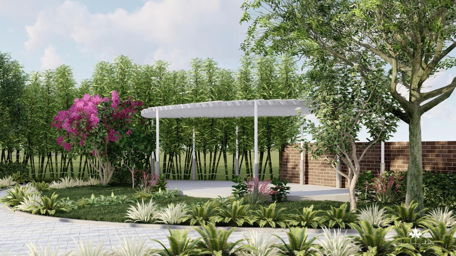 A pergola is extended from the roof to mark the entrance, provide greenery and to provide shelter from rain.