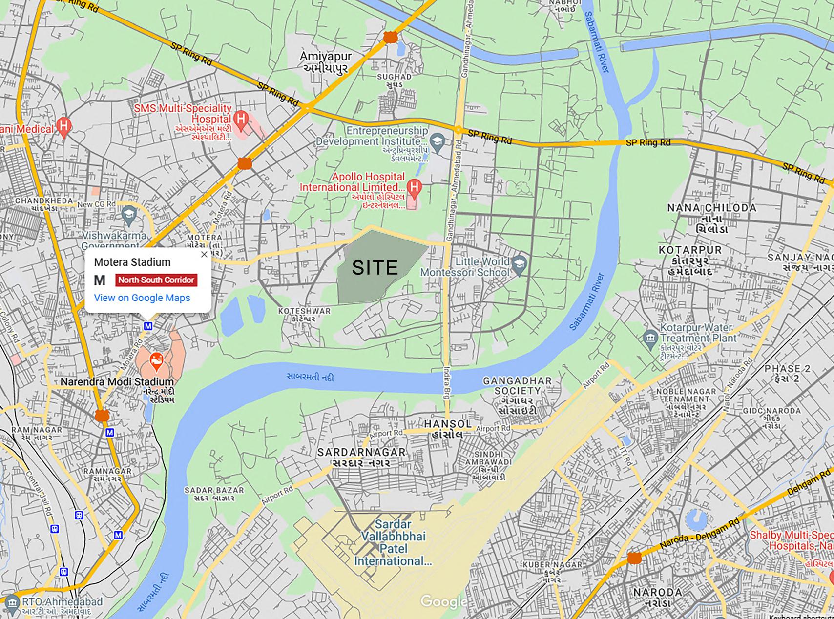 The site is located very much near the sport hub of ahmedabad near to narendra modi stadium which gives us a lot of opportunities for development in the future.