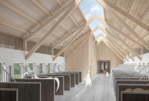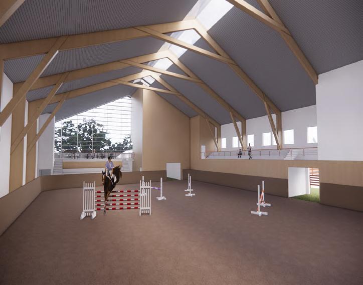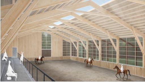 The riding arenas are where the riding lessons and competitions are held. It was therefore the ambition to create a bright and open space with a good climate for work and exercise. Most of the pony riding lessons will be held in the small arena and the larger arena will be for big horses and competitions. Dividing the arena into two improves the sound quality and reduce disturbances.