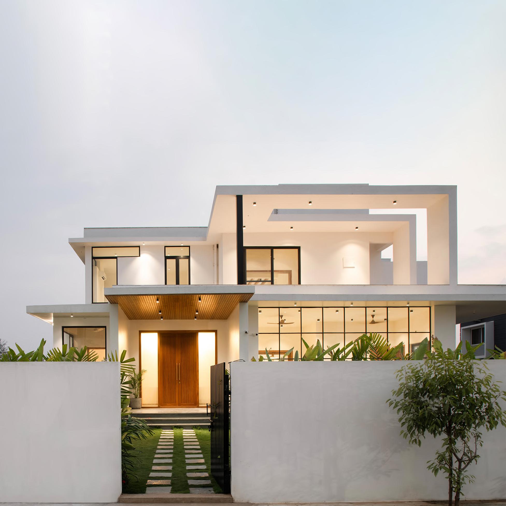 Welcome to “The House of Frames”, a serene vacation home, where transitional and tropical modern styles converge in harmony with Vastu principles. This climate-responsive retreat optimizes natural light, considers micro-climates, and achieves rhythmic balance through strategic openings and light/shadow play. The result is a symphony of visual and sensory experiences, fostering relaxation, inspiration, and rejuvenation amidst nature.