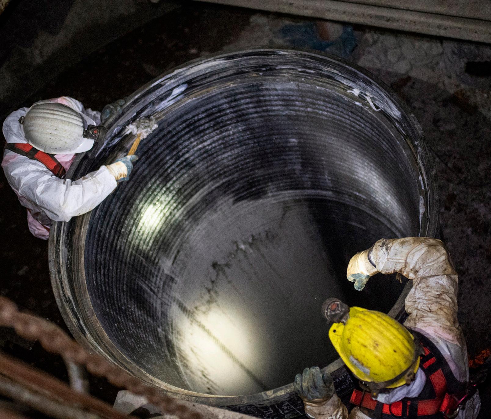 Der erste Bauabschnitt umfasst dabei die Erneuerung der Grubenwasserableitung und der Hochwasserabschlagsleitung zwischen dem ehemaligen Schachtstandort Haus Aden und der Straße Kleine Heide. Die zwei dafür neu aufgefahrenen Medienkanäle verlaufen zehn Meter unterhalb des Datteln-Hamm-Kanals, darin werden zukünftig Grubenwasser- und Hochwasser getrennt voneinander abgeführt. Der zweite Bauabschnitt – die Verlängerung bis zur Lippe – erfolgt im Nachgang. Die gesamte Baumaßnahme endet voraussichtlich Anfang 2029.