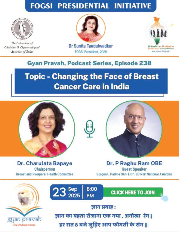 In conversation with Dr Charulata Bapaye, an eminent gynaecologist and chairperson of FOGSI breast sub-committee, Dr Raghu Ram began by commending Dr Sunita Tandulwadkar, FOGSI president for creating weekly Podcasts on various aspects to empower gynaecologists nationwide.