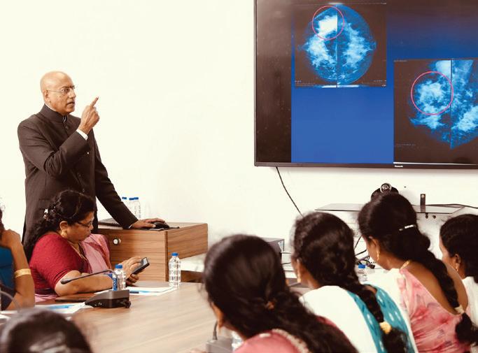 Perhaps the most transformative initiative has been the large-scale Clinical Breast Examination (CBE)based screening programme, implemented by the Foundation in partnership with the governments of Telangana and Andhra Pradesh. Between 2012 and 2016, more than 200,000 underprivileged women aged 35–65 years across 4,000 villages were screened by 3,750 trained healthcare workers.