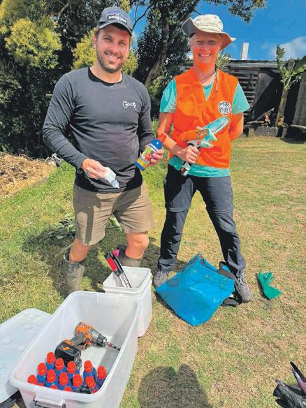 Armed with pruning saws, drills and plenty of human power, the greenfingered enthusiasts dealt to privet in several locations in Raglan – including Greenslade Road, Lorenzen Bay and Robert Street.