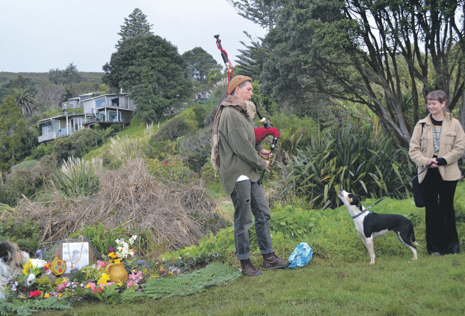 Afew dozen of Whale Bay’s doglover community came together amid mud and rain at the local reserve last week to give “a beautiful send-off” to a pet lost in a fire which razed a three-storey Calvert Rd home.
