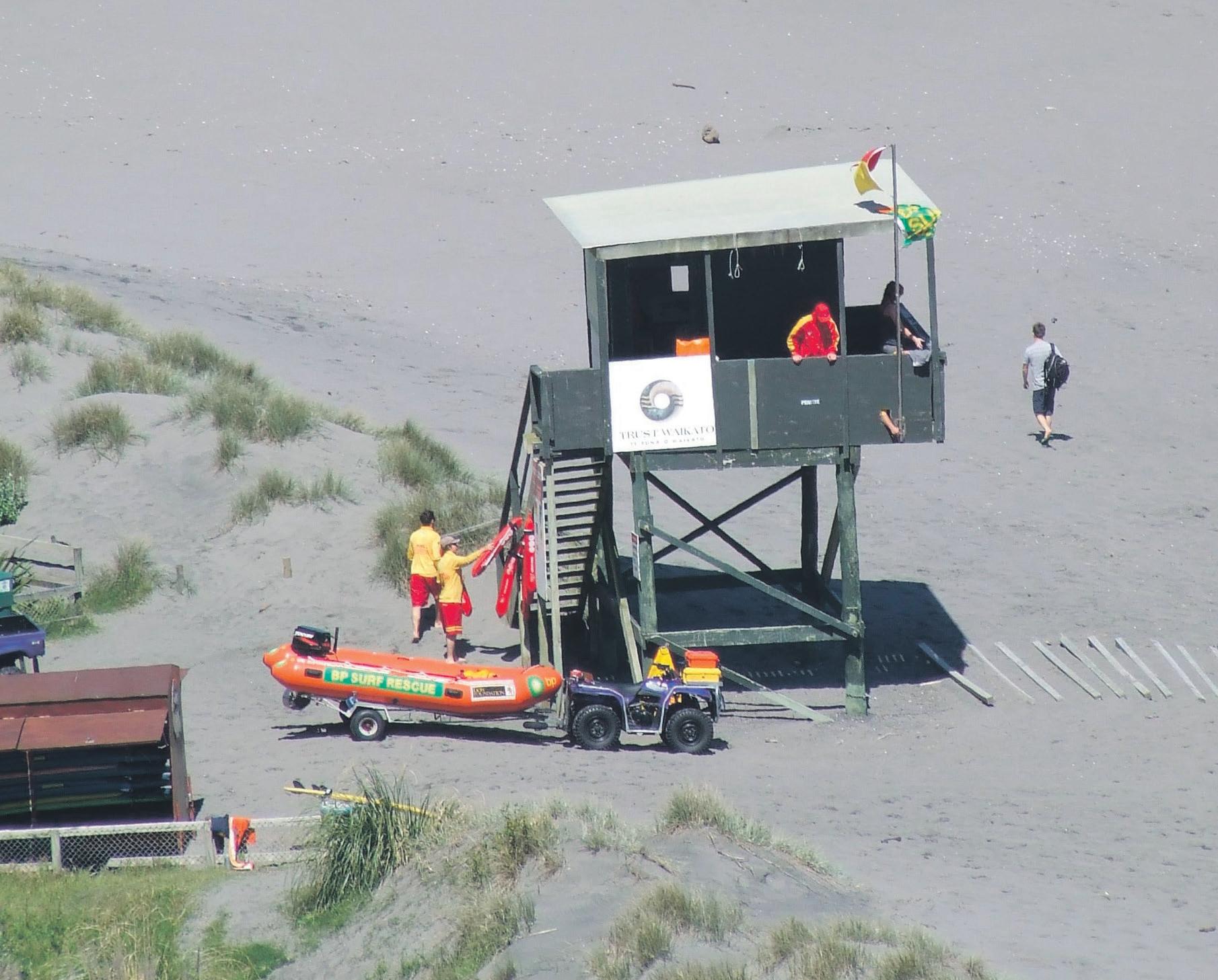 Initially, all equipment was stored in a shed belonging to Harstone’s on the Raglan wharf. On patrol days this equipment was then taken by tractor to the end of Riria Kereopa Memorial Drive then down the beach, past Sucker’s Point and along to Ngarunui Beach. At the end of the day the return trip had to be made back to Raglan wharf.