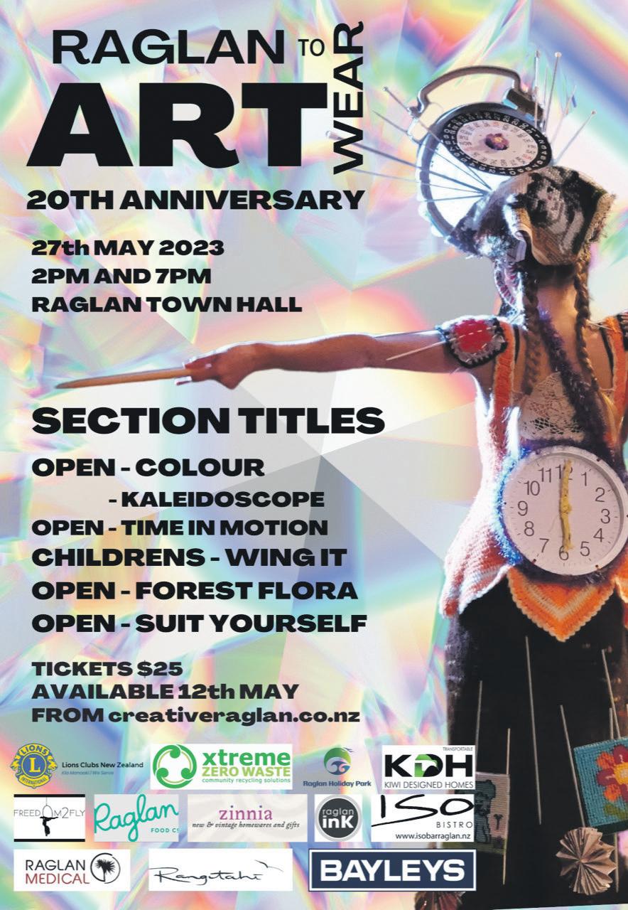 Creatives from Raglan and further afield are busy putting their wearable art work together with just two weeks left before our unique on-stage Raglan Art to Wear show.