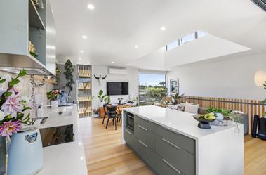 This modern, multi-level, low-maintenance home is definitely worth checking out. It offers the versatility to serve as either a lock-up-andleave weekend getaway or a genuine family home. On the ground level, you'll find generous open-plan spaces where most of the action happens. The area that could serve as a double internal access garage is currently utilised as a rumpus room, with storage for toys, tools, and a laundry area. The sleek, efficient kitchen is cleverly positioned as the interactive hub of the home, allowing the in-house chef to showcase their culinary skills. RV $1,300,000.