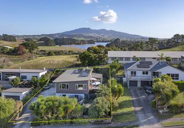 Set in a beautifully elevated position, this three-bedroom home offers breathtaking views of the harbour and majestic Mt Karioi. Its north-facing aspect ensures the home is bathed in natural light throughout the day. With a seamless indoor/outdoor flow, you’ll love the wrap-around deck, perfect for soaking in the views or entertaining guests. The wood fire and heat pump in the open plan lounge area provide a cosy, welcoming atmosphere, no matter the season. The galley kitchen is functional and includes a dishwasher for added convenience. The bedrooms are generously sized, with the master offering an unbeatable vista of both the harbour and Mt Karioi. It also features a heat pump for year-round comfort. The two remaining bedrooms are well-appointed with built-in wardrobes, ensuring ample storage space. The bathroom is a true standout for those who appreciate a bath and a standalone shower, plus a separate toilet. Set on a low-maintenance 560sqm freehold site, this property offers a generous space with potential for a variety of uses.
