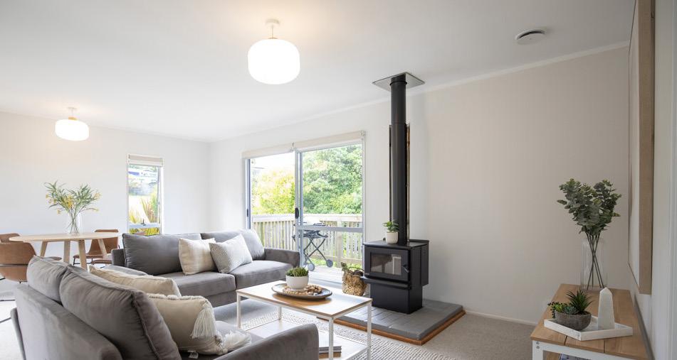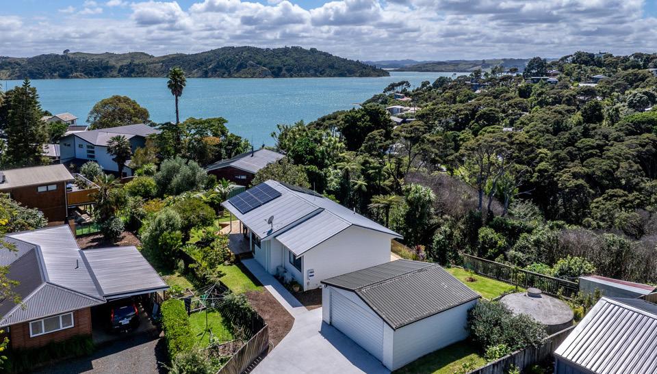 The generous master suite offers direct access to the deck, while the second upstairs bedroom has a serene bush backdrop. Enjoy privacy and views of Mt Karioi, from the dining area and deck. The third bedroom provides a versatile space, as an office, or studio. With a heat pump and HRV system, comfort is guaranteed year-round. Step outside to your private deck and sun soaked lawn, or explore the possibility of adding a second bathroom, with a hot water connection already in place.