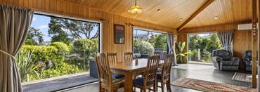 Nestled in a peaceful cul-de-sac, 11 Sunshine Rise presents a rare opportunity to secure a three bedroom home, positioned in one of Raglan’s most desirable coastal pockets. Set on an elevated 941sqm freehold site, the home is perfectly positioned to capture all day sun while overlooking a lush native bush reserve. A wraparound deck with a sleek glass balustrade ensures the view remains uninterrupted and the connection to the outdoors seamless. Sustainability is woven into this property with three heatpumps, insulation, solar panels and a 33,000L water tank. An impressive list of fruit trees and established gardens provide a year round harvest. A double garage completes the package. The video provides a great aspect to the land and home.