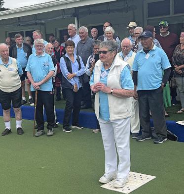 Anne Goodin, club patron and life member, sent down the first jack, with John Cunningham, Te Kauwhata Retirement Trust Board (Aparangi) chair delivering the first bowl on the new green.