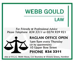Opinions and views expressed in the Raglan Chronicle do not necessarily represent those held by the Editors or Publishers. Every care will be taken in the preparation and placement of submitted material but the Editors/Publishers shall not be liable for errors or omissions or subsequent effects due to the same. It is the submitters responsibility to ensure material is not libelous or defamatory. The Editors/Publishers reserve the right to abridge, alter or decline any material submitted to the Raglan Chronicle to meet the constraints of space and/or maintain a reasonable standard of language and decorum.