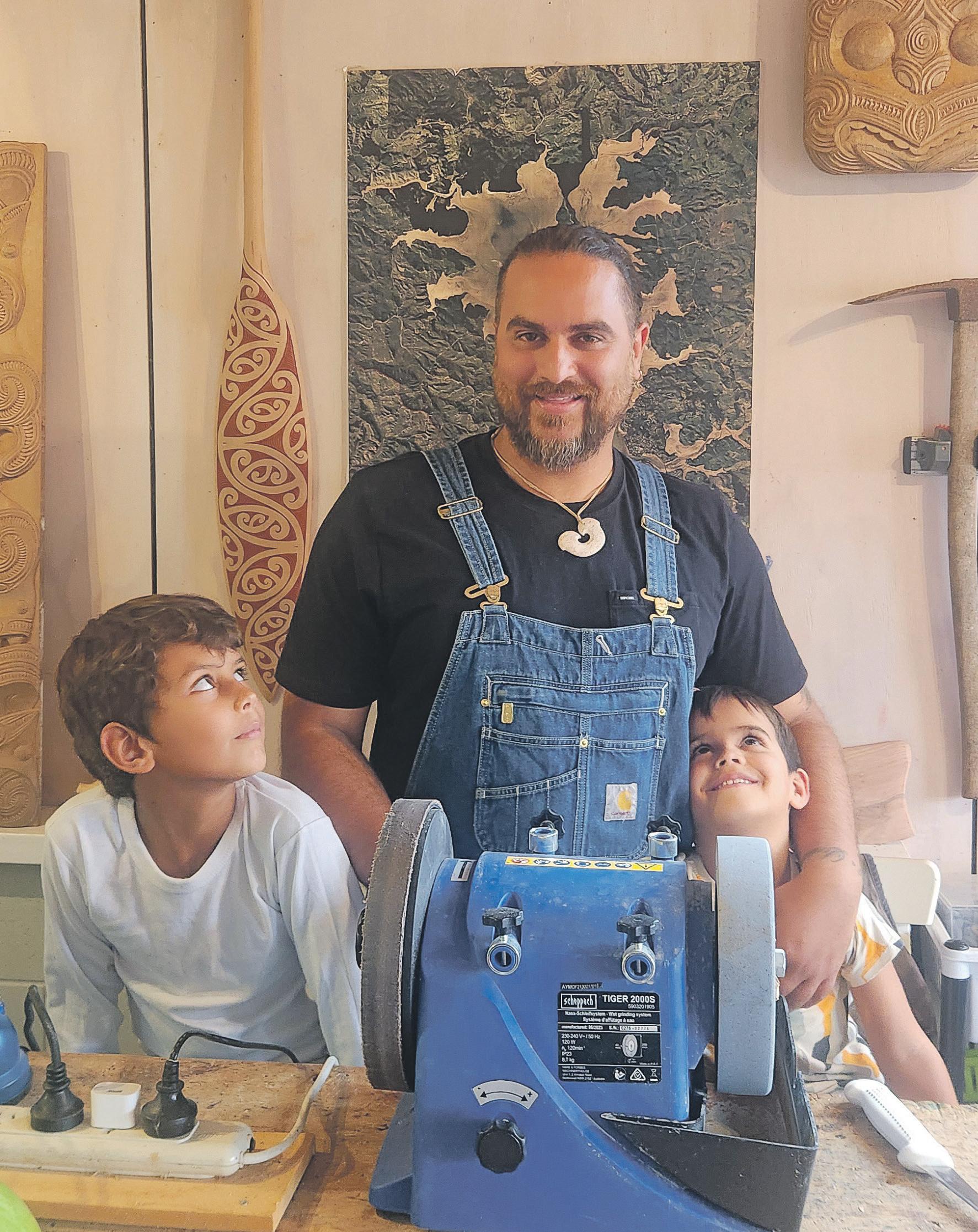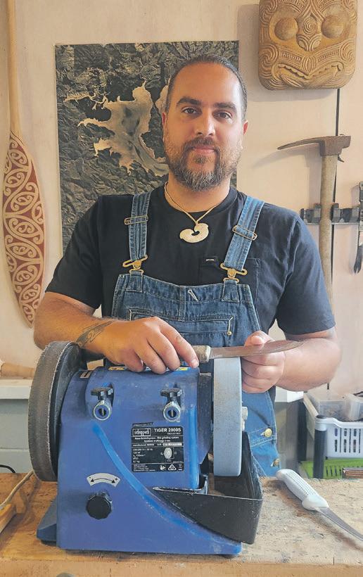 Kaiwhakairo (carver) Raj Irving is honing his blade-sharpening skills while offering a valuable service to the community.