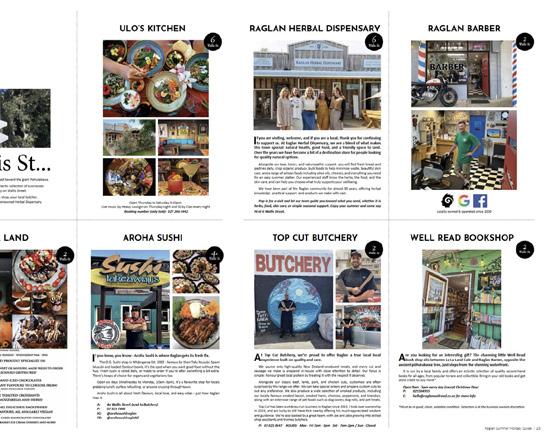 We create regular features to showcase local businesses - if you are interested in featuring in one of these please contact Geraldine: gebgdesign@gmail.com Our regular features include: Home, Women in Business, Health & Wellbeing, Art, Wharf & Foodies. For any other advertising or content for the mag, please contact Jacqui: info@raglanchronicle.co.nz