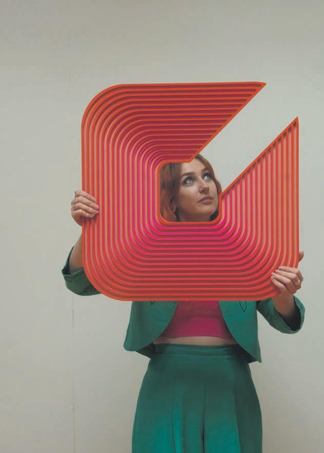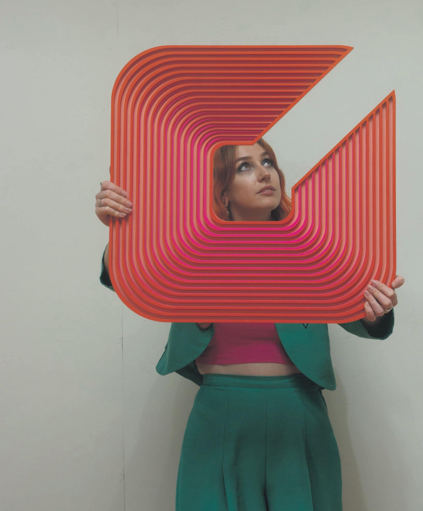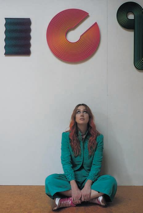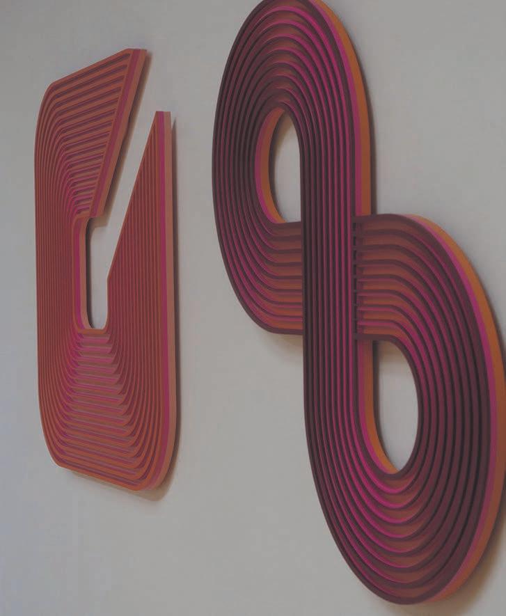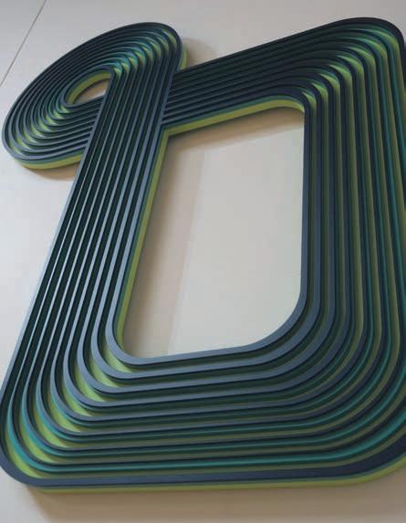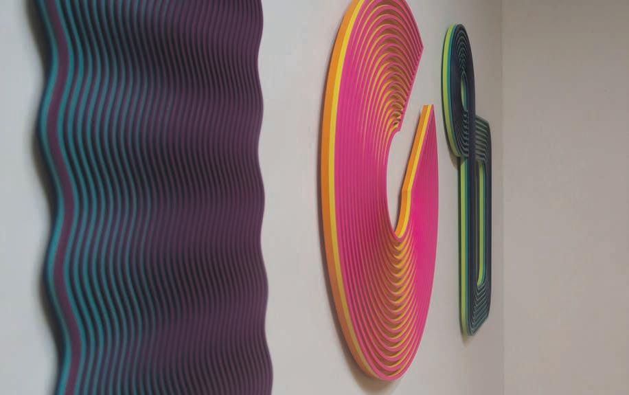 has that 3D aspect to it, they change in colour and form as you move around them. Within my practice, I create designs in Illustrator and then use a laser cutter to cut shapes into MDF. From there I spray paint the shapes and glue them together,” she says.