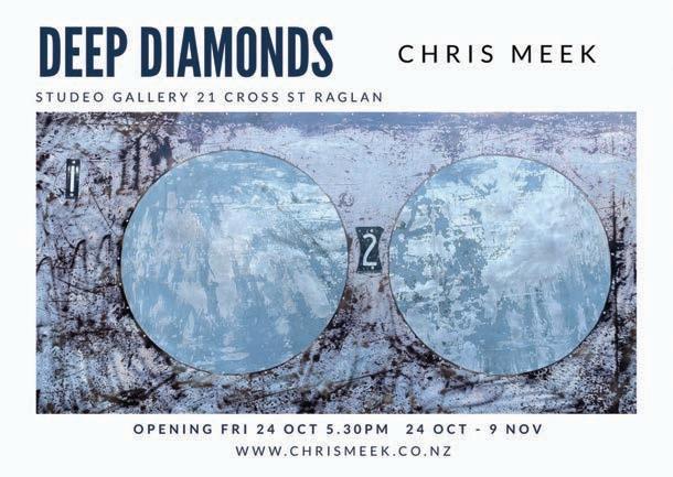RAGLAN ARTS WEEKEND OPENING NIGHT – THURSDAY 23 OCTOBER Official Opening of Raglan Arts Weekend - tickets on sale now. Enjoy a cocktail and beautiful hearty grazingtable style meal with our Raglan Arts Weekend artists. $55, Iso Bistro, 6.30 – 9.30pm, Thursday 23 October. Visit www.raglanartsweekend.nz for more info and to book your tickets.