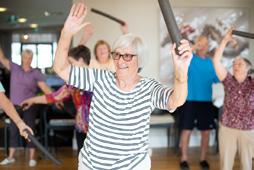 Seated & standing exercise, chairs always available for support, lots of variety & fun