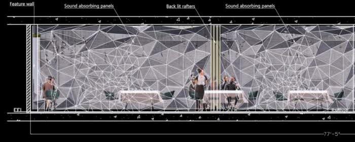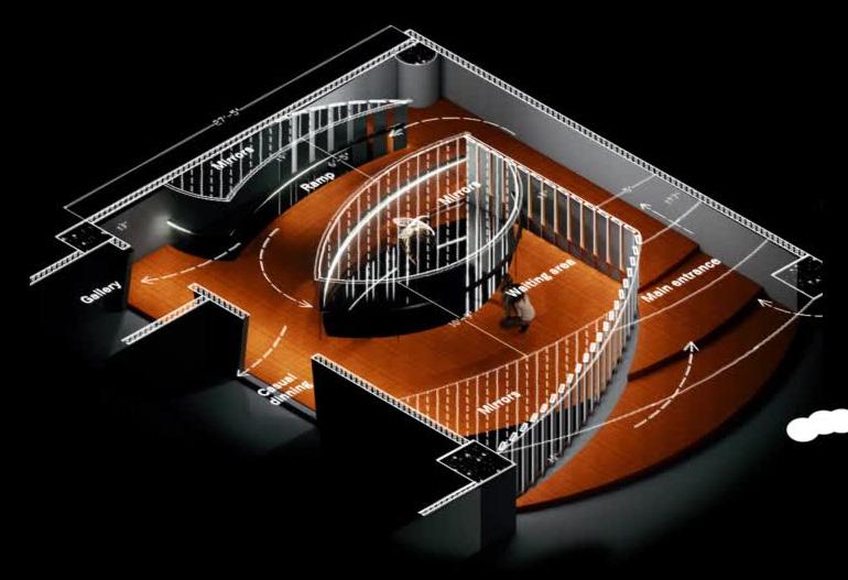 This initial space at the site sets the tone for the entire experience, aiming to transport visitors into a different reality. It’s designed as an “infinity lagoon” that challenges preconceived notions of the mall space. For the second fine dinnig, I was inspired by Plato’s Allegory of the cave, it utilizes innovative materials and sound-absorbing technology to create an abnormally silent environment, ideal for fostering the intimate atmosphere required for fine dining.