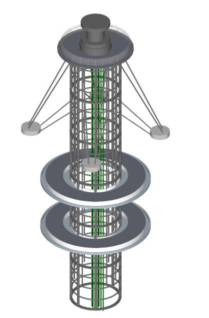 The “Sea Pillar” repurposes the oil rig’s drill core as an innovative solution. Its central core features strategically positioned ropes for cultivating nutrient-rich seaweed, a superfood with remarkable environmental healing properties. This system can be lowered into and raised from the water for efficient harvesting.