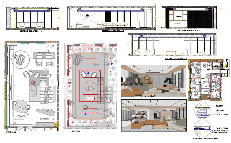 Had to work on the wall elecations, false sealing, custom door details for a temple room (pooja room).