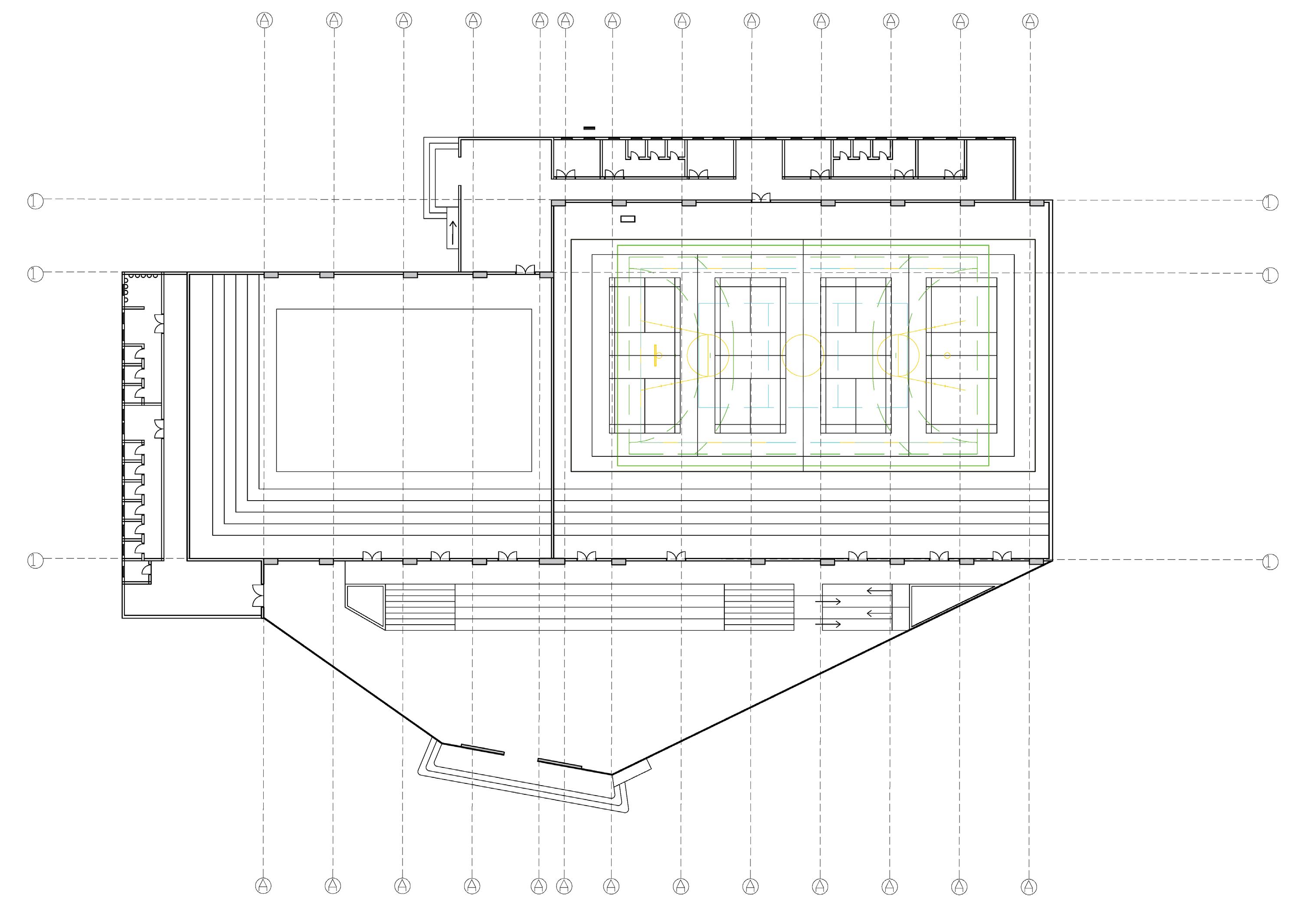 To enhance the aesthetics and functionality of the sports complex, the roof incorporates elements of transparency and natural light. Large sections of the roof are composed of translucent materials, such as glass or lightweight polycarbonate panels, allowing natural light to penetrate and illuminate the interior of the arena. This creates a vibrant and energetic atmosphere, while reducing the need for artificial lighting during the day.