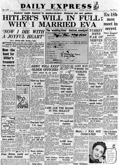 1945. aasta 29. aprilli varastel tundidel täitus lõpuks Eva unistus – ta abiellus maaaluses punkris vaenlase eest varjul olles mehega, keda armastas. Tseremoonia viis läbi propagandaministeeriumi alamametnik Walther Wagner, abielutunnistusele kirjutasid tunnistajatena alla Joseph Goebbels ja Martin Bormann. See oli tasu Eva peaaegu vankumatu lojaalsuse eest ja abieludokumendile alla kirjutades kirjutas ta „Eva B”, enne kui kriipsutas selle maha ja kirjutas „Eva Hitler, sündinud Braun”.