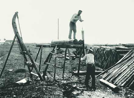 Varasemate paatide ja suurte paadi mÔÔtu kuutide plangutus oli saadud veel kirve ning kiiludega lĂ”hki aetud palgi plankudest, kuid 1860. aastaiks olid kasutusel juba suured lauasaed, milleta suuremate purjelaevade ehitamine oleks olnud vĂ”imatu. Ehitusplatsi kĂ”rvale olid nĂŒĂŒd ĂŒles seatud saagimispukid, millel saeti laeva planke.