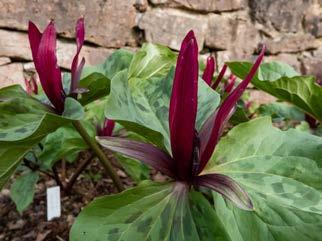 ebameeldiva aroomiga tumevelvetjaspunased, harva valged, vahel ka rohekaskollastes toonides kroonlehtedega kolmetised õied. Kasvukõrgus kuni 50 cm.