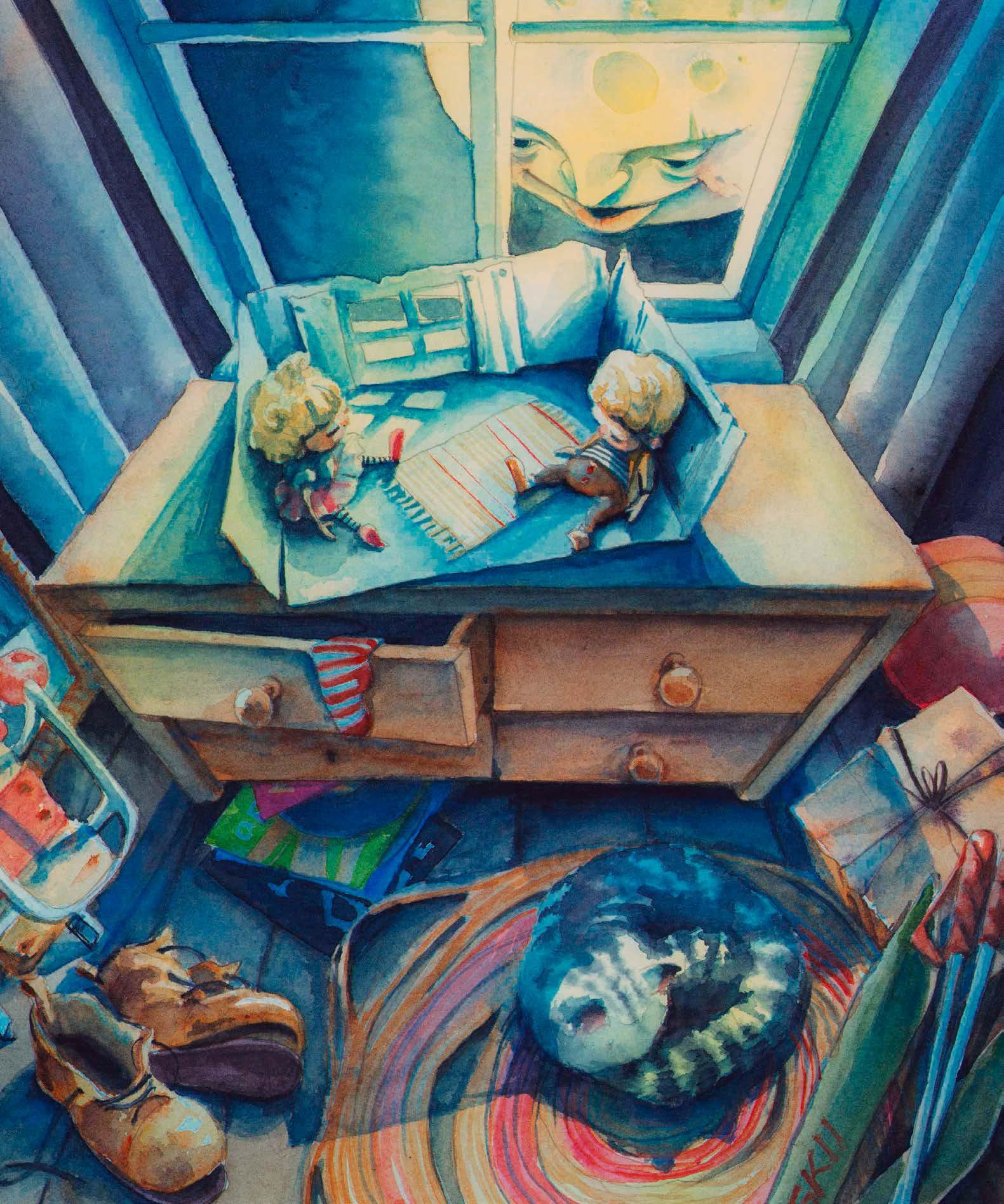„Nonoh,“ noogutas kuu. „Kas ei oleks parem, kui läheksite ära sellest tolmusest kolikambrist mõne teise lapse juurde? Ma tean, siinsamas üle hoovi teises majas elab väike tüdruk. Minge tema juurde, ta mängib teiega just samuti nagu Mari.“