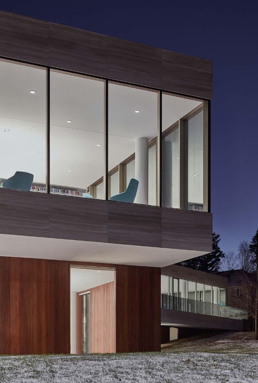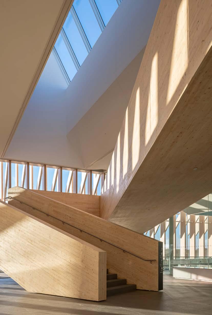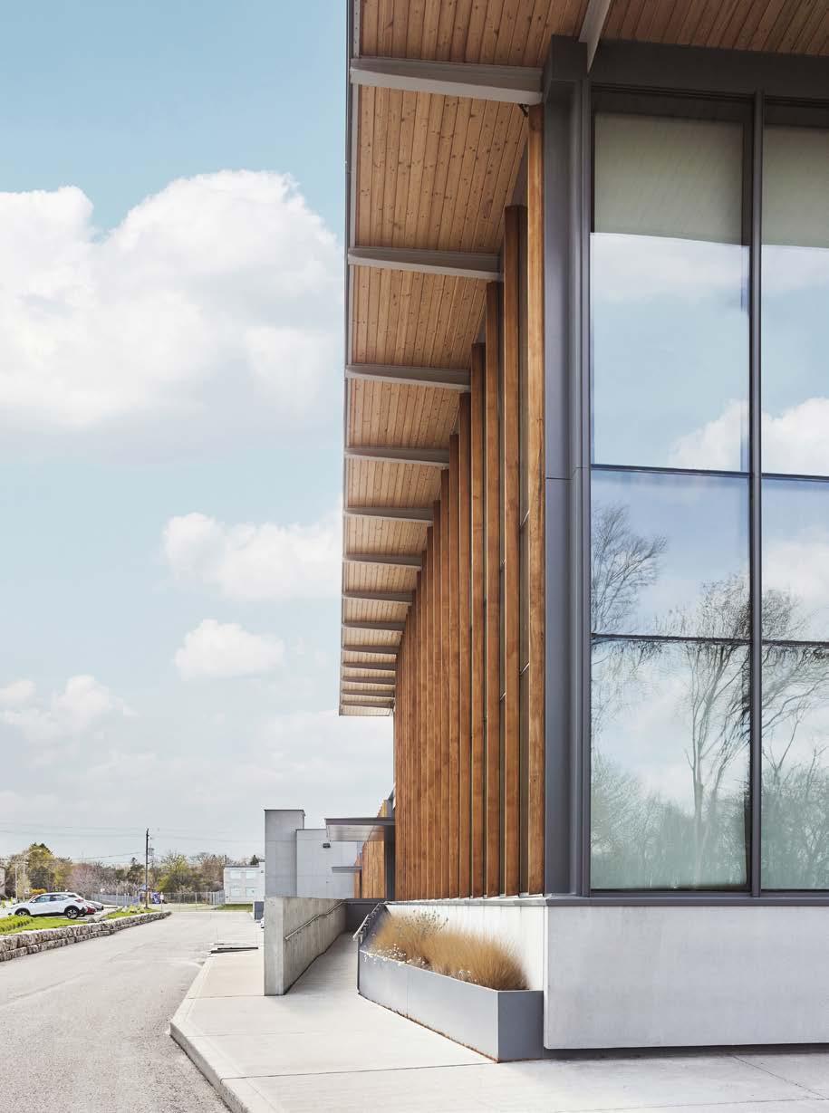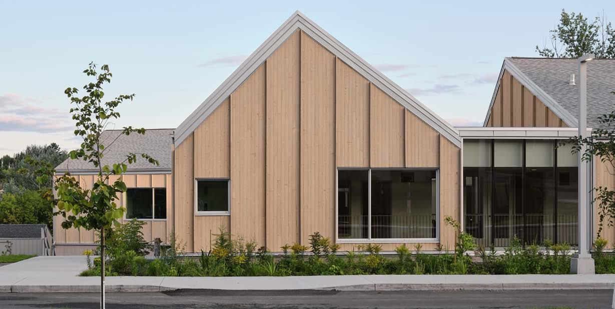 architecture and its capacity to adapt to people’s needs and improve social equity. In addition to being a gathering place, some projects demonstrated how architecture can enhance the way people interact and behave in them. The King City Public Library by Kongats Architects, for instance, provides a multi-generational community hub, matching the unexpected functions of a library and a seniors’ centre. The Jury appreciated the project’s capability to create inclusive and accessible spaces for its diverse users. The contextual response in the massing, scale and materiality was also a perfect fit for suburban King Township. The other project that impressed the Jury for its ability to mediate people and space was the École de l’Étincelle by Agence Spatiale, APPAREIL Architecture and BGLA. The school’s whimsical maisonette-like design breaks up the scale of the building complex, making it feel like a little village surrounding a central plaza. This serves as a stimulating activity courtyard that “sparks” the students’ curiosity and contributes to creating a safe space that fosters a sense of belonging.