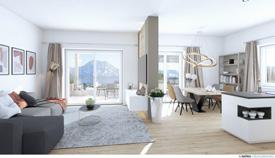 Touristische Vermietung, professionelles Vermietungsmanagement, Eigennutzung, Haus Typ "Altaussee" zwei Zimmer mit Bad, Terrasse; Zentralgebäude: