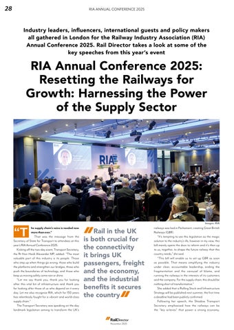 elcome to the latest edition of Rail Director the month in which the Railways Bill was introduced, the landmark piece of legislation aimed at transforming Britain’s railways which will create Great British Railway (GBR). As Transport Secretary Heidi Alexander said at the Railway Industry Association (RIA) Conference, “this bill merely opens the door to reform and it’s then up to us, together, to shape the future railway that this country needs”.