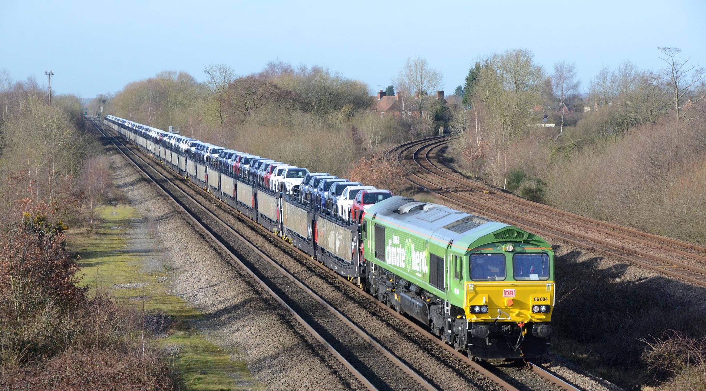 • A freight train can carry the equivalent of up to 129 HGVs and emits 76% less CO2 per tonne than road freight.