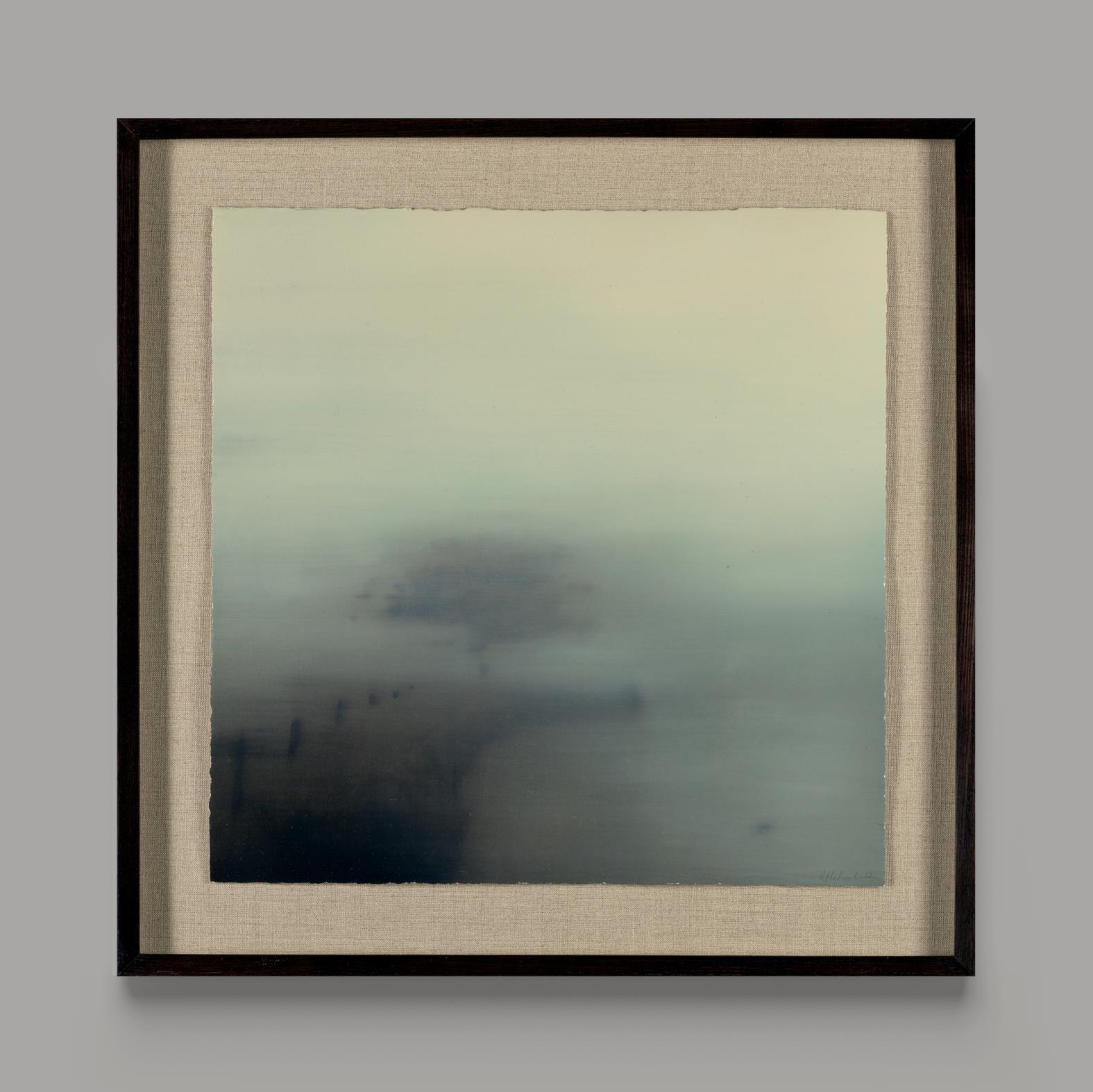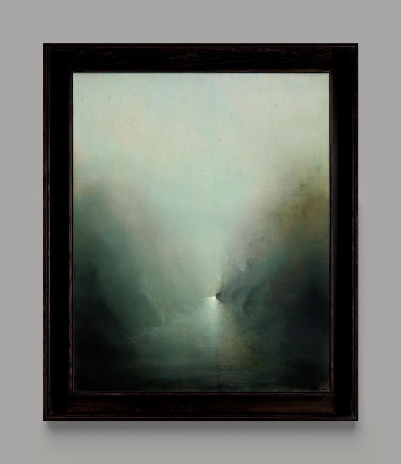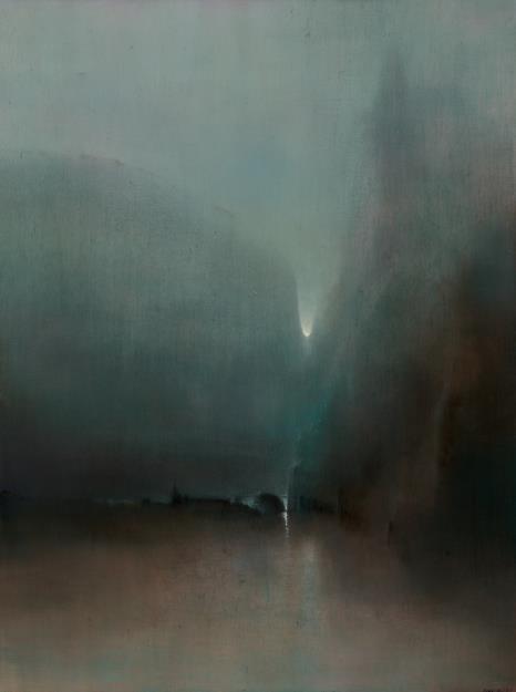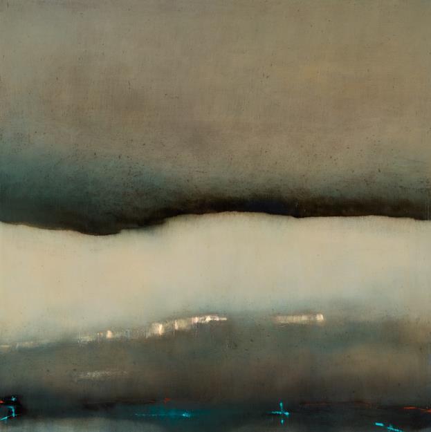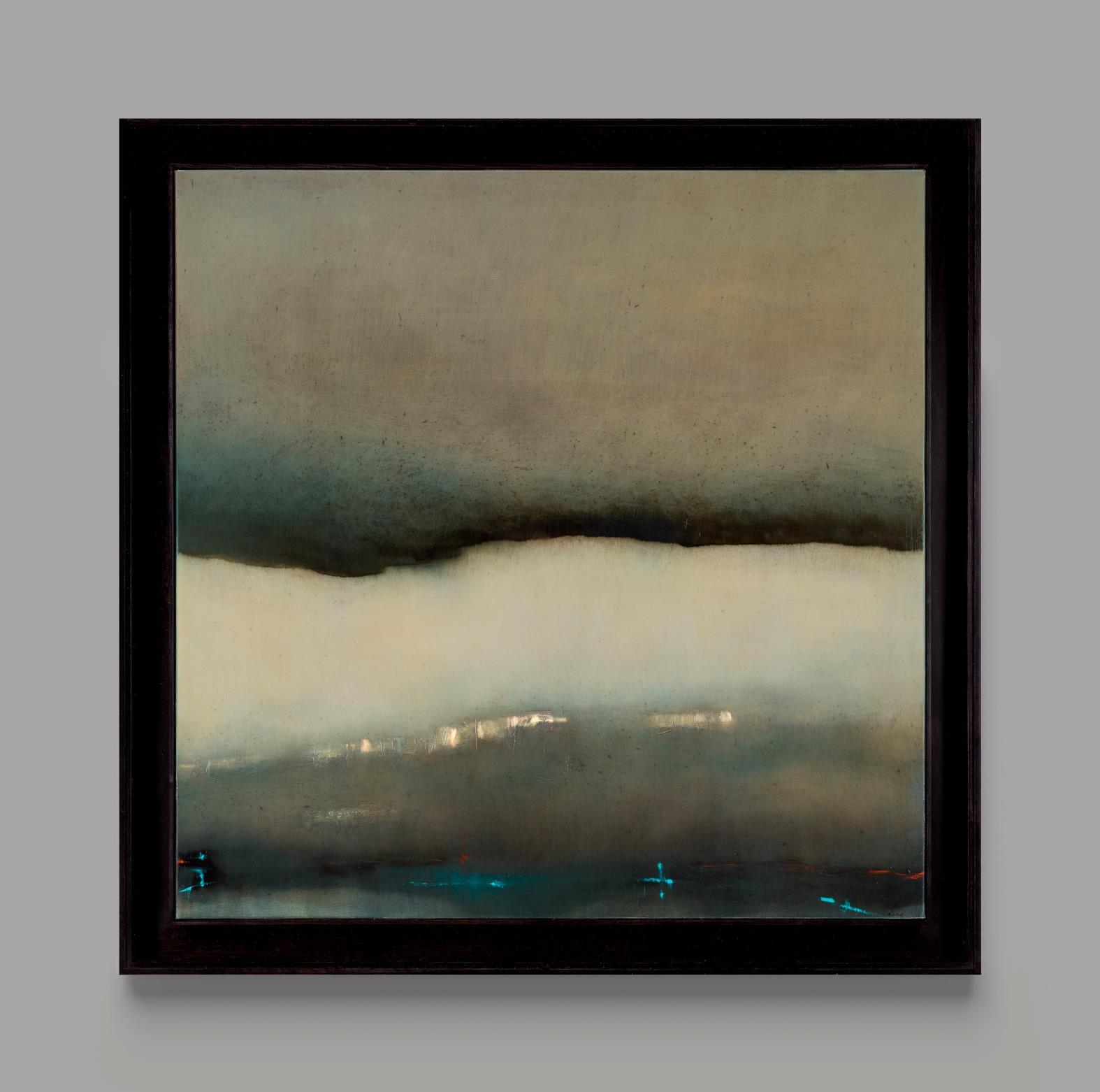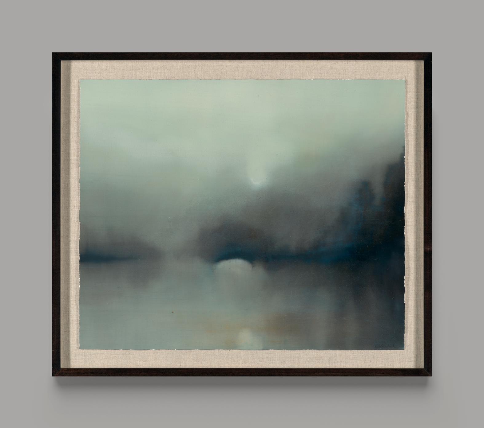 Through the meticulous layering of transparent oil glazes, Whadcock captures a sense of light refracted through weatheral prisms of mist, fog and water. The sublime Romanticism of the resulting images recall the late, unfinished works of J M W Turner but Whadcock’s world is less disturbed by the destructive forces of nature Instead we are invited to gaze, meditatively, into glowing fields of diffused colour that draw influence from another of Whadcock’s great inspirationsAbstract Expressionism. Peering through the gossamer of shimmering hues, shadowy forms emerge to suggest great masses of prehistoric rock but the fluidity of the paint softens our focus and reminds us that the natural landscape is anything but permanent Whadcock finds magic here in the falling light of dusk, the interval between day and night, when reflection meets anticipation and horizons evaporate into air.