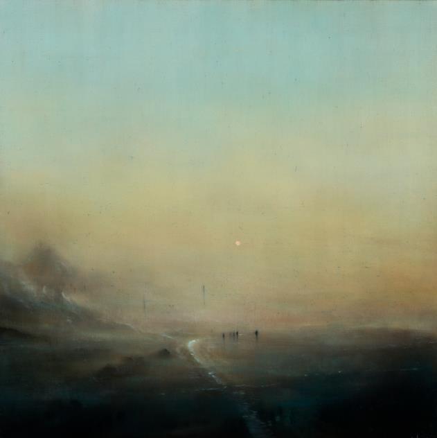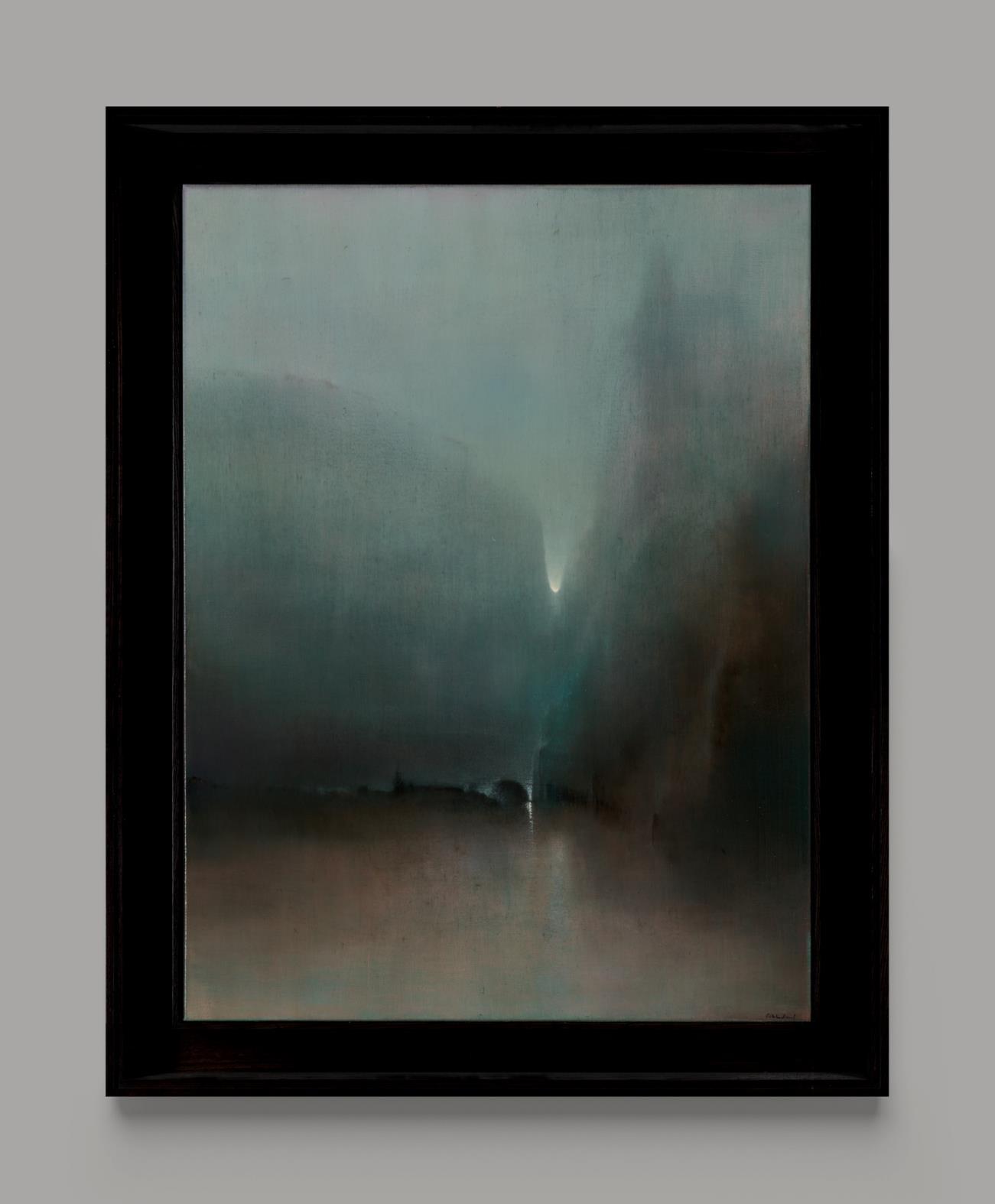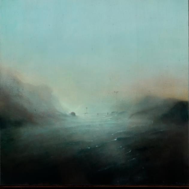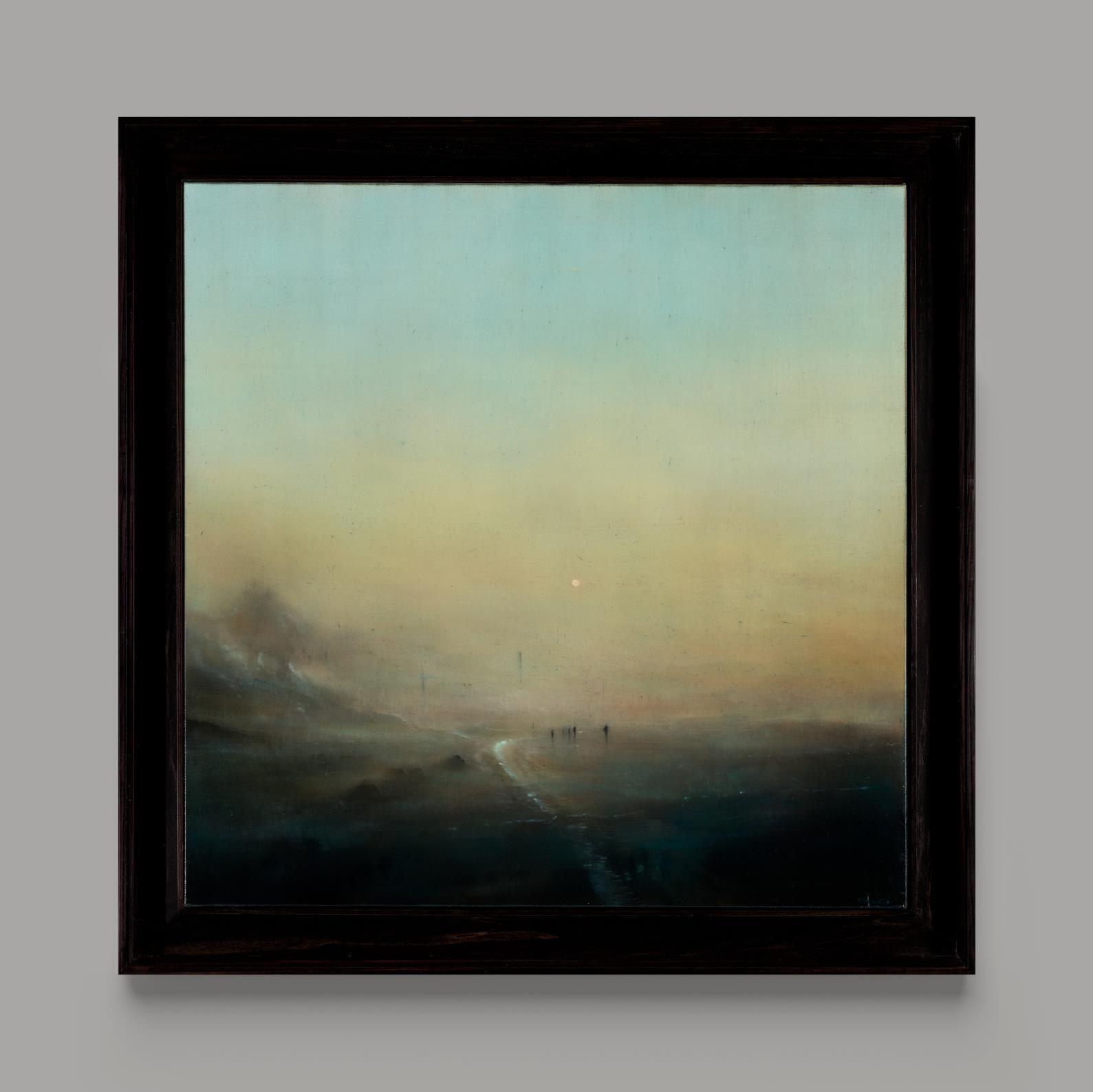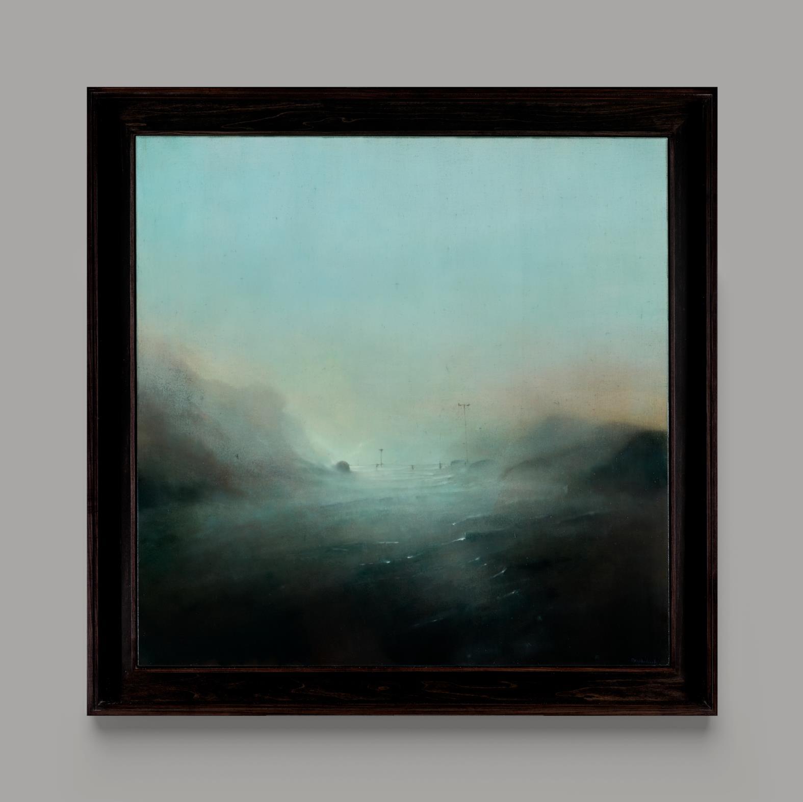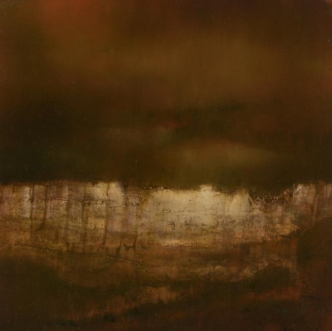 Through the meticulous layering of transparent oil glazes, Whadcock captures a sense of light refracted through weatheral prisms of mist, fog and water. The sublime Romanticism of the resulting images recall the late, unfinished works of J M W Turner but Whadcock’s world is less disturbed by the destructive forces of nature Instead we are invited to gaze, meditatively, into glowing fields of diffused colour that draw influence from another of Whadcock’s great inspirationsAbstract Expressionism. Peering through the gossamer of shimmering hues, shadowy forms emerge to suggest great masses of prehistoric rock but the fluidity of the paint softens our focus and reminds us that the natural landscape is anything but permanent Whadcock finds magic here in the falling light of dusk, the interval between day and night, when reflection meets anticipation and horizons evaporate into air.