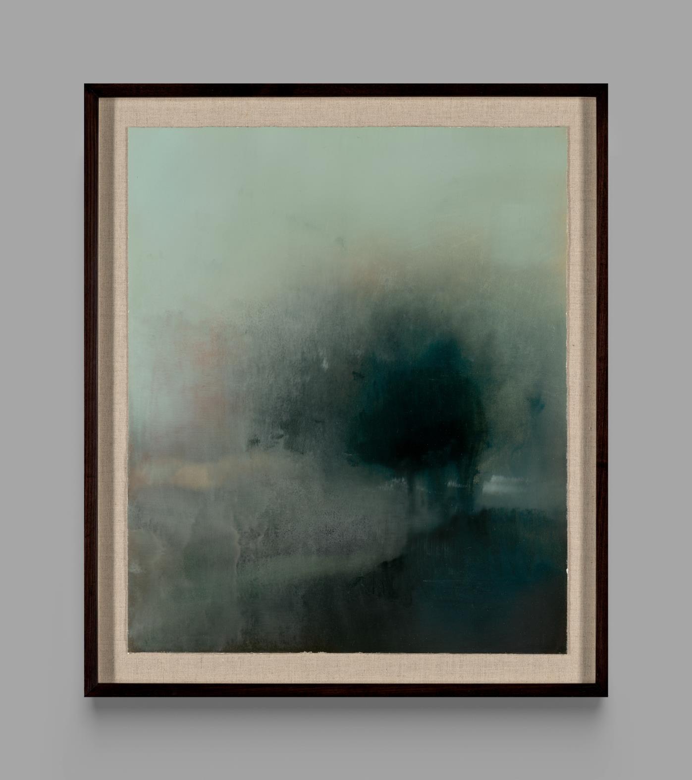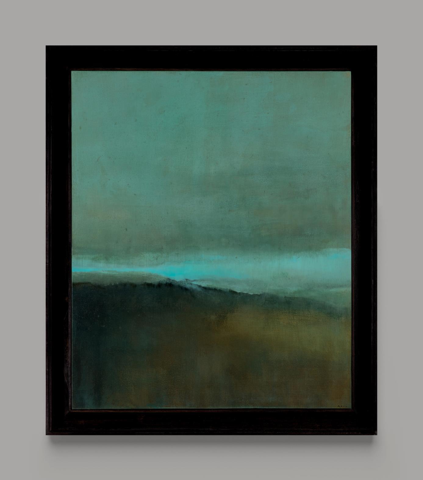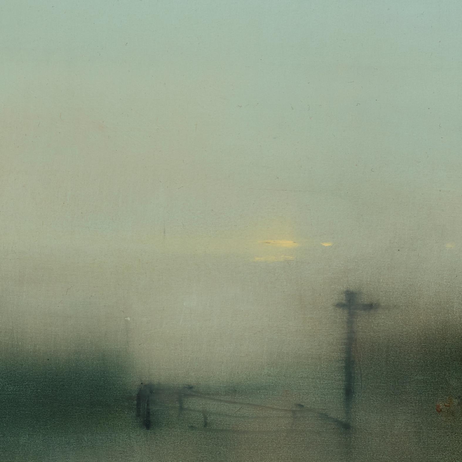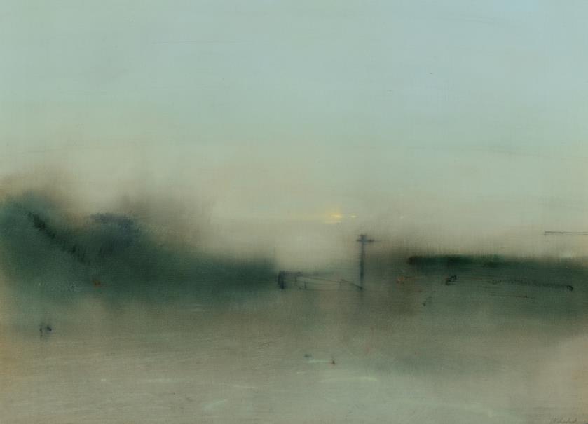 The attempt to reduce compositions down to their barest minimal lines and hues defines these paintings. There is often the sense of a landscape coming into being, suffused with early light or the indeterminacy of dusk. The floating softness of the image allows the viewer to move their gaze within it as one would upon a hazy view’