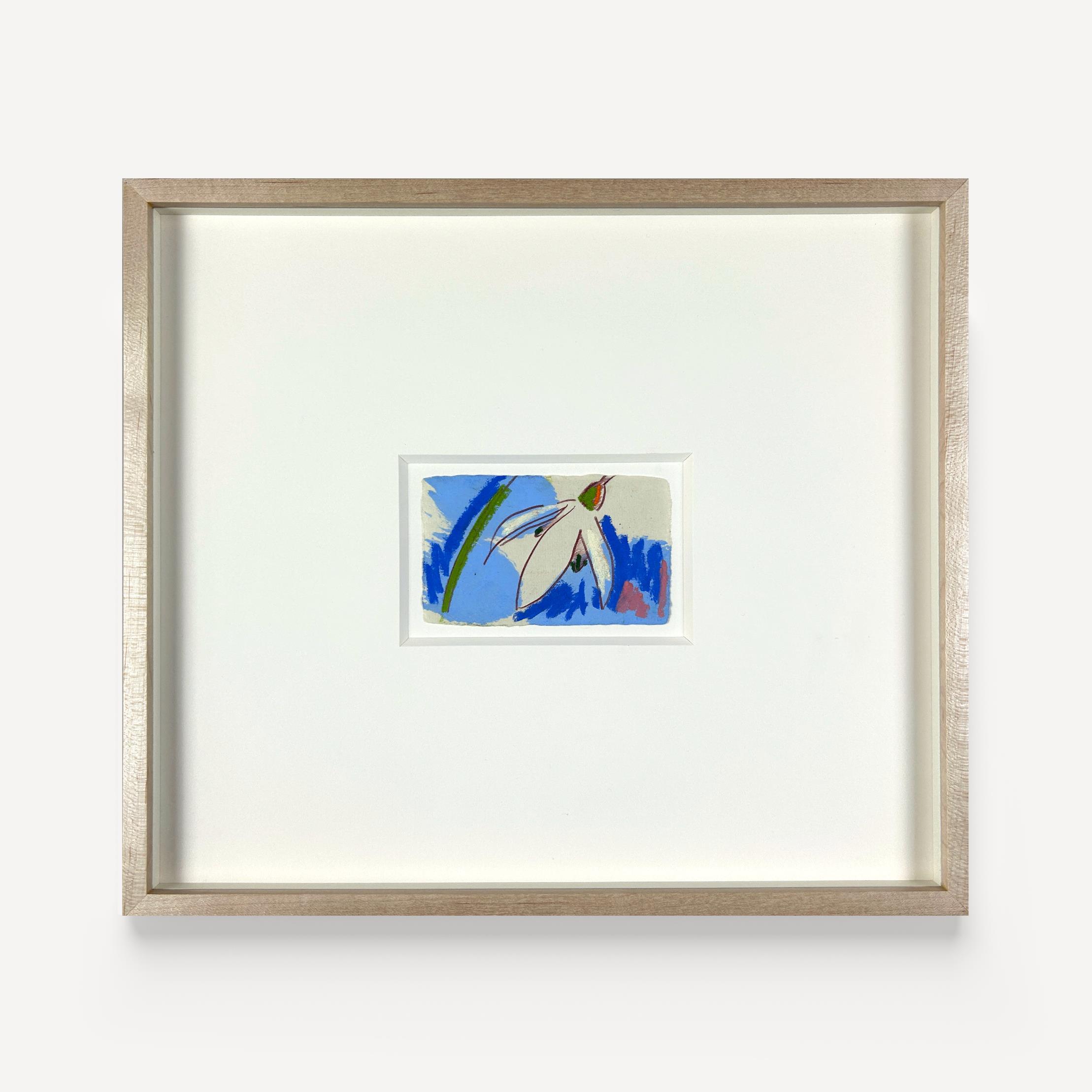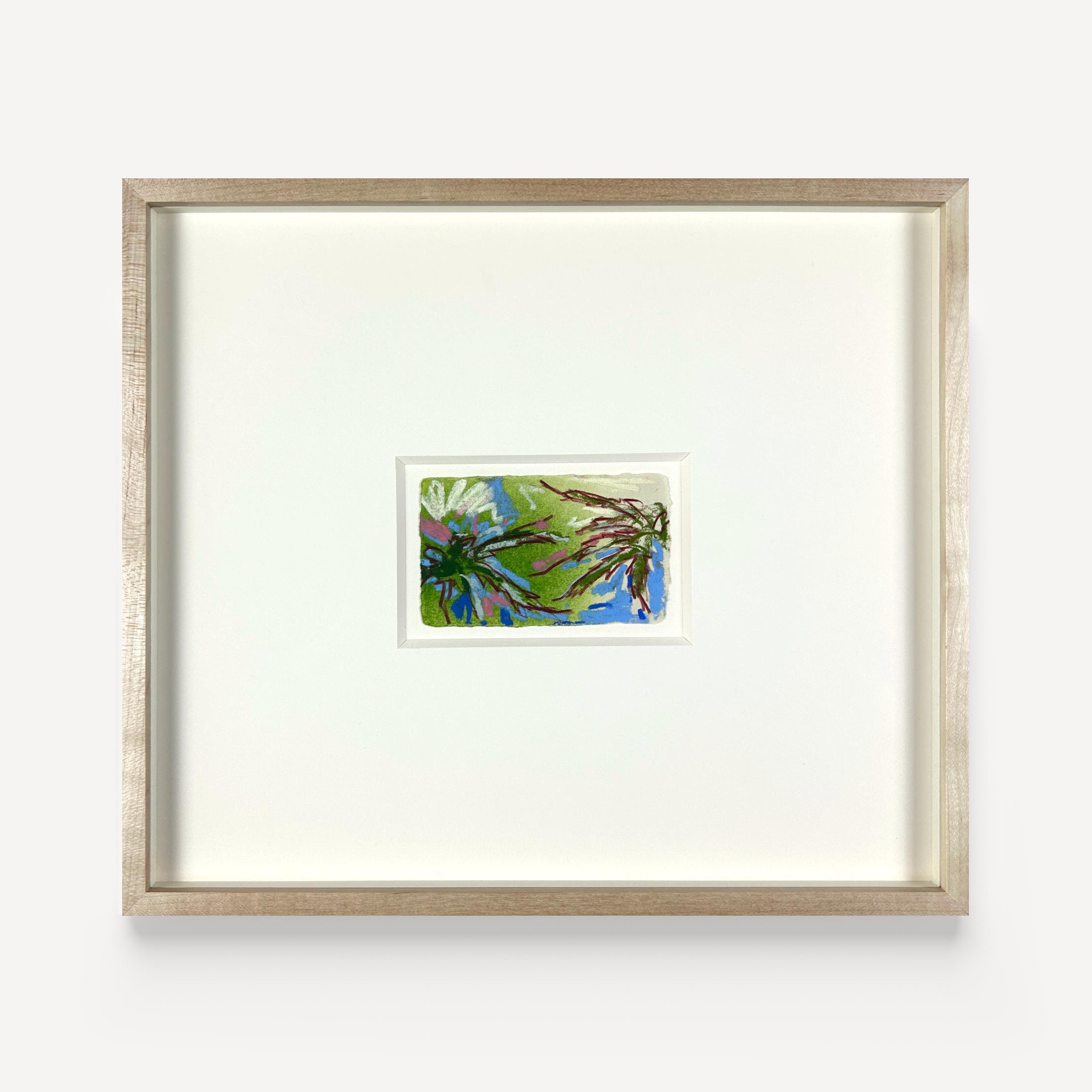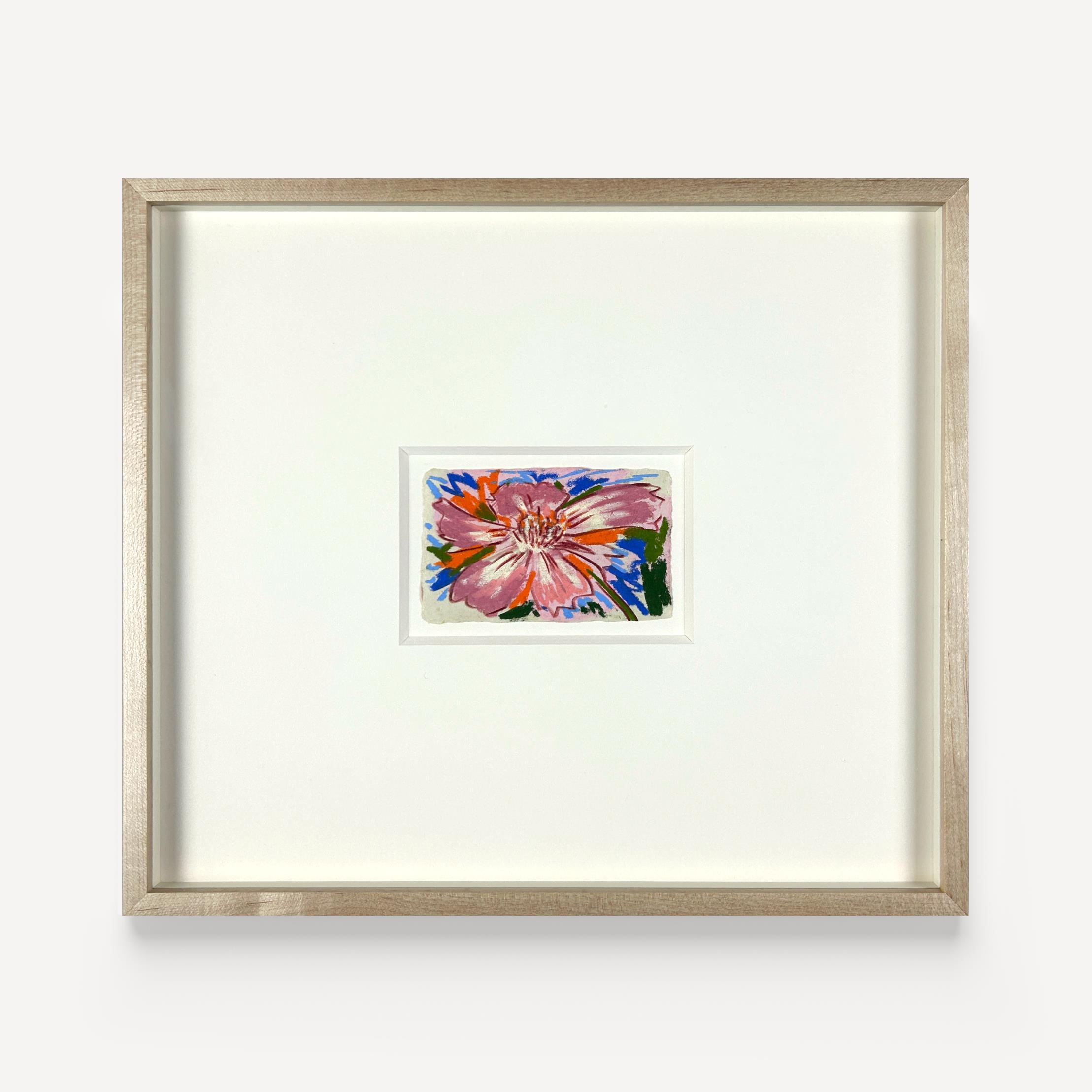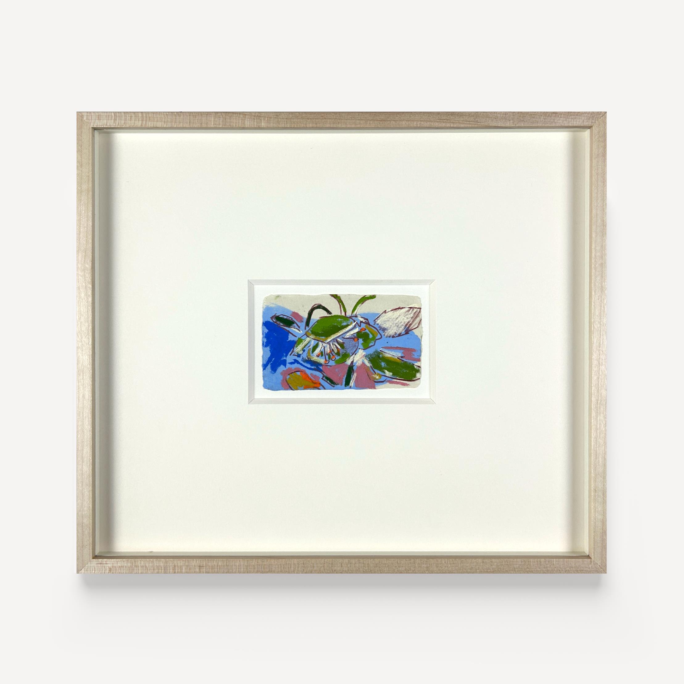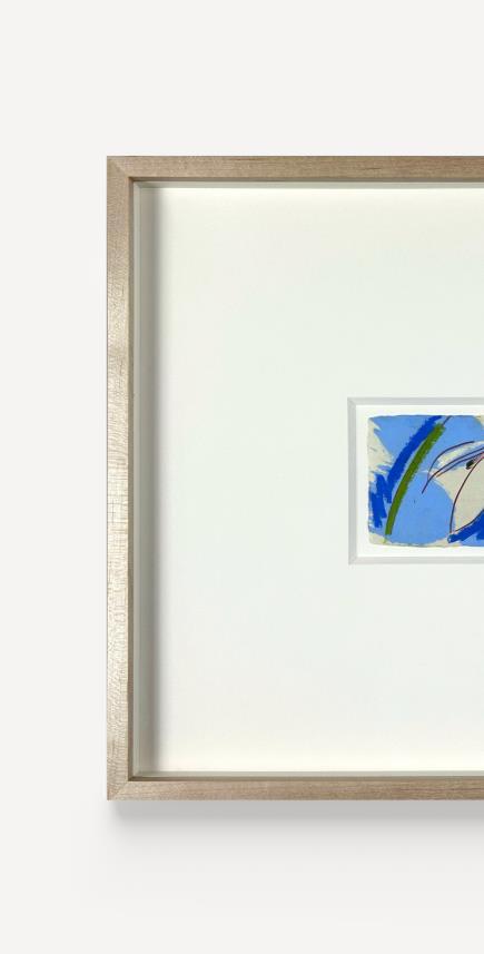 Presented float mounted on a pale pink linen mount, set within a dark blue Ash box frame, glazed with UV filtering anti-reflective glass