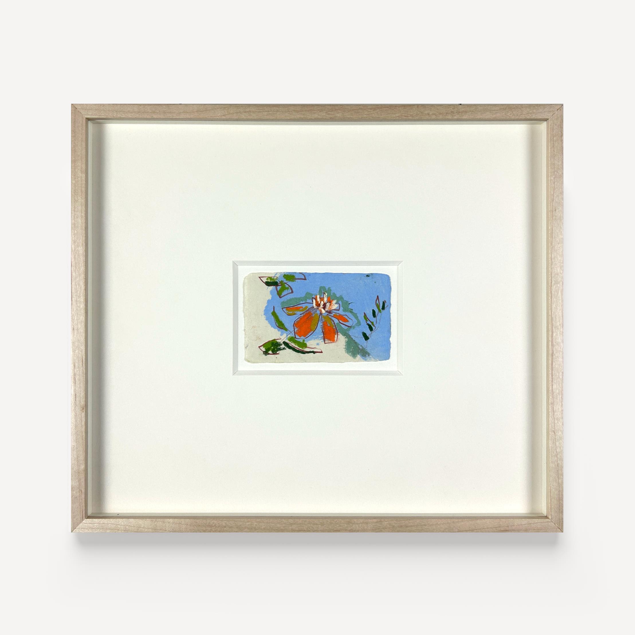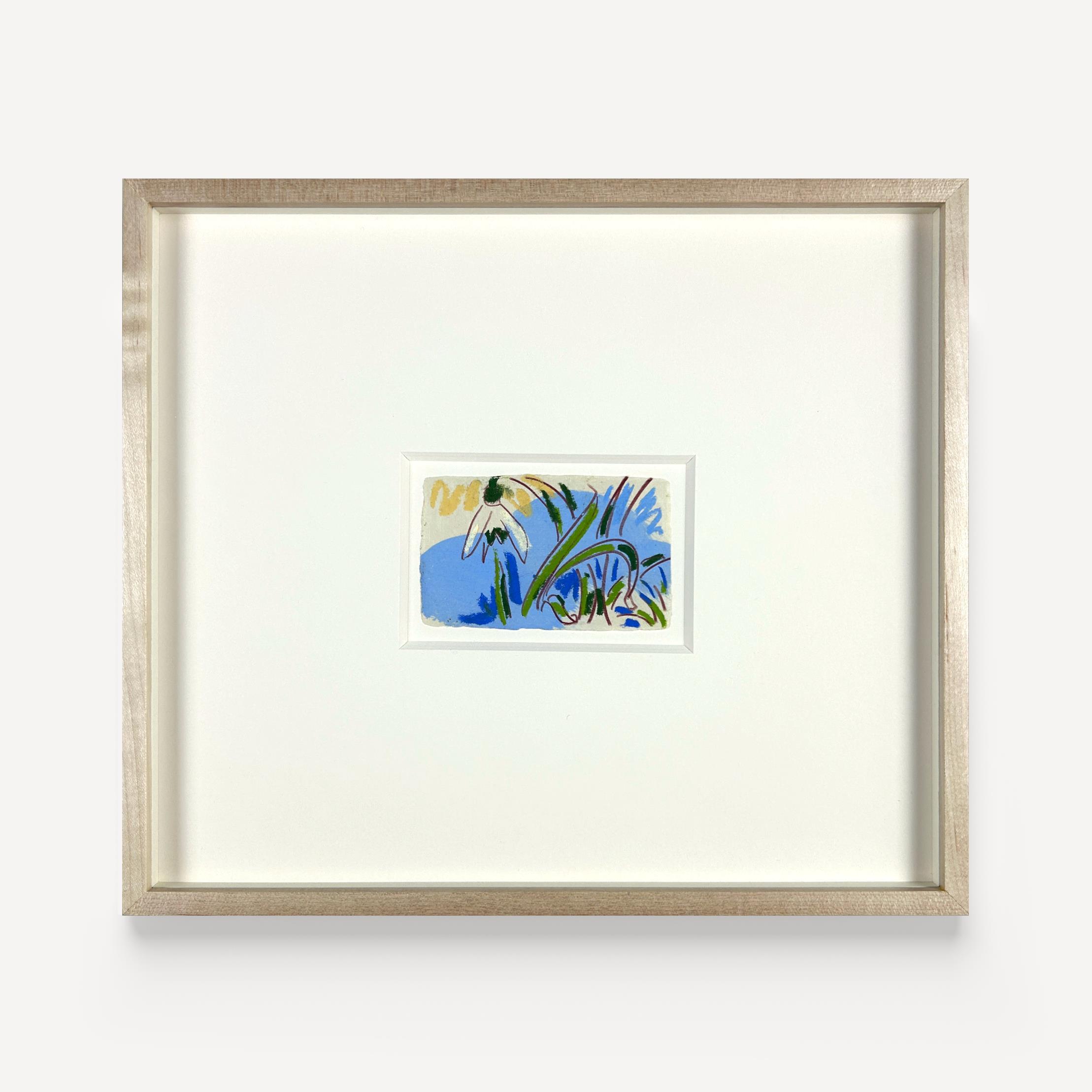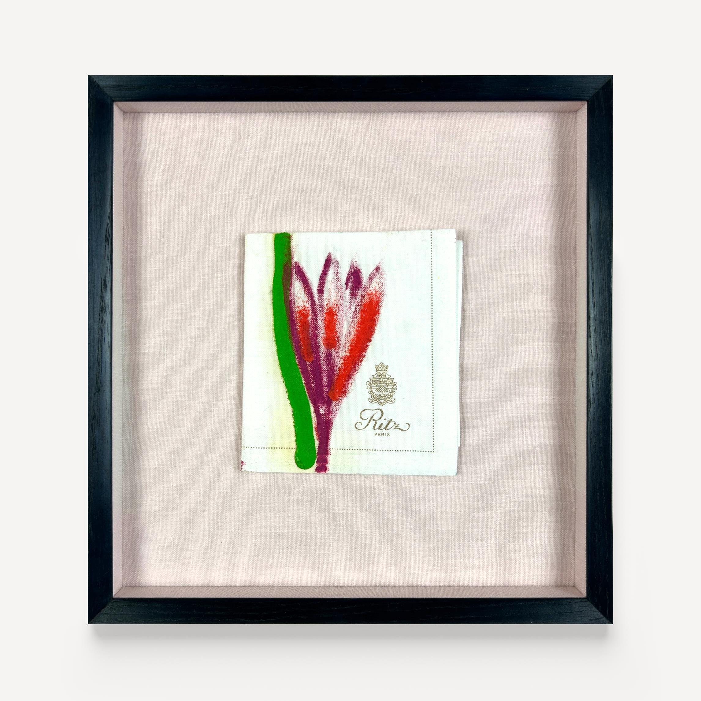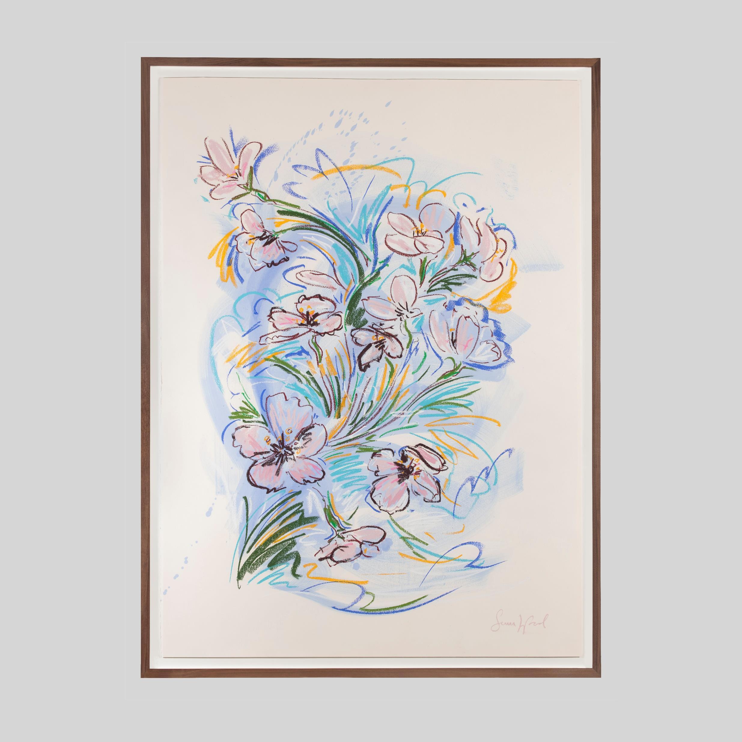 Presented float mounted on a pale pink linen mount, set within a dark blue Ash box frame, glazed with UV filtering anti-reflective glass