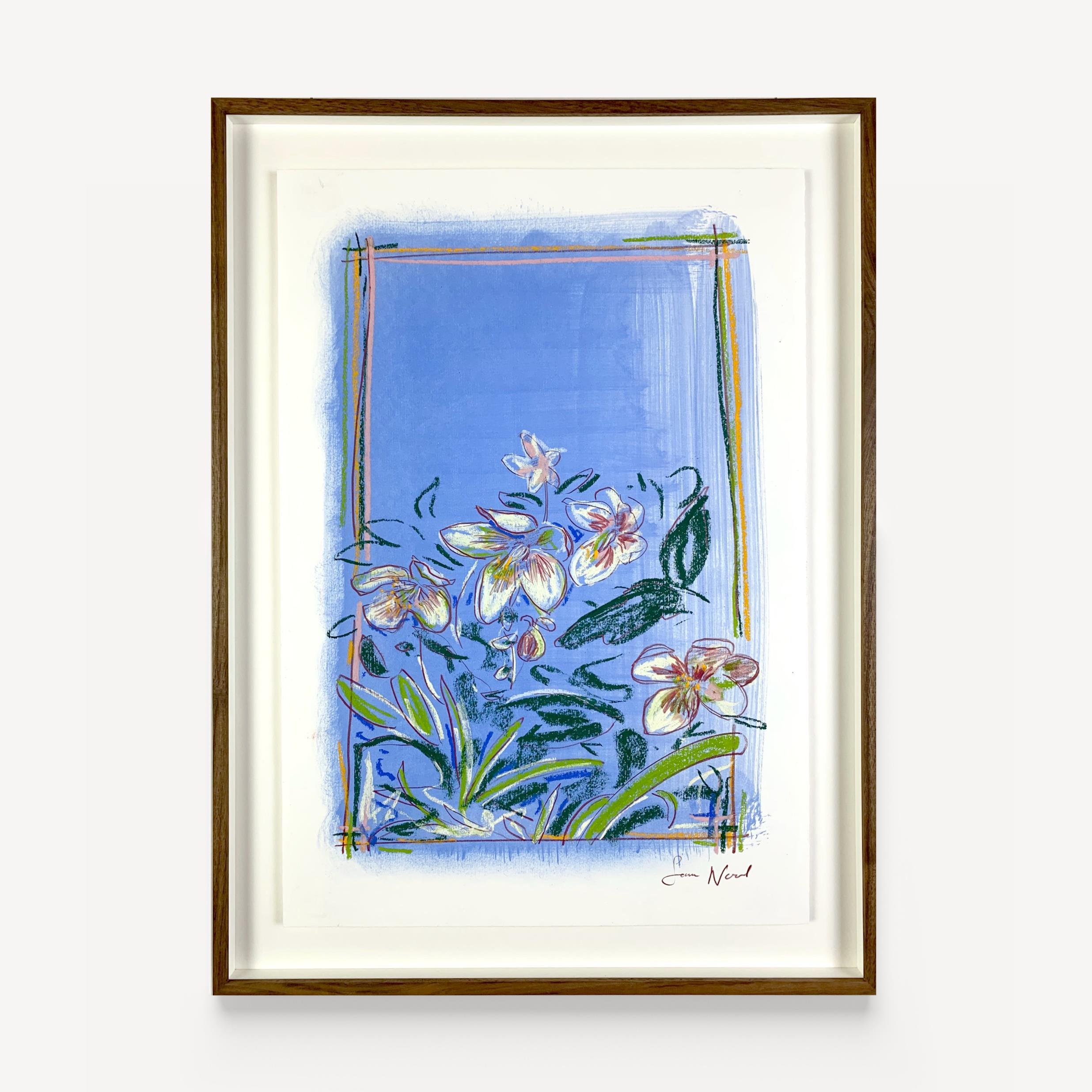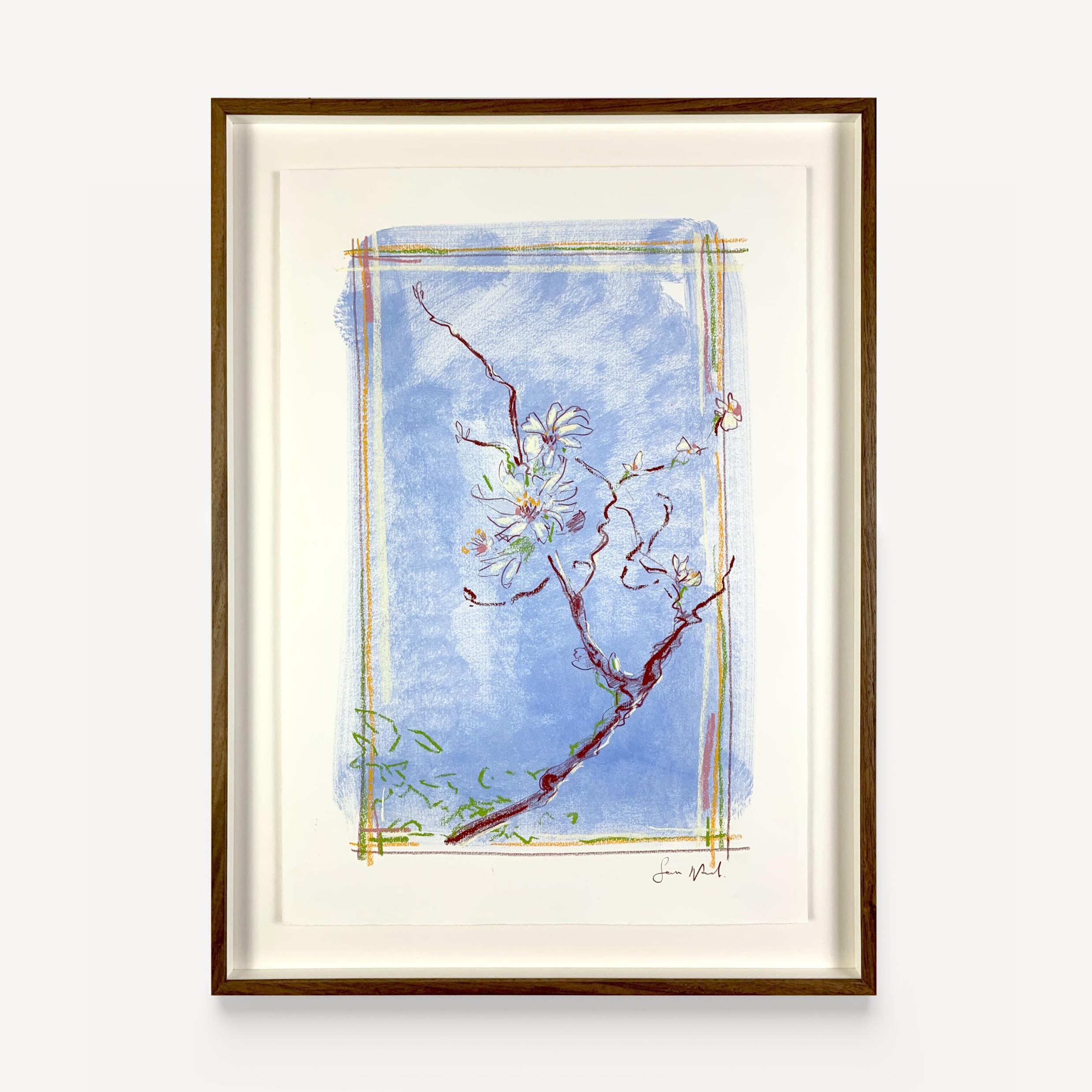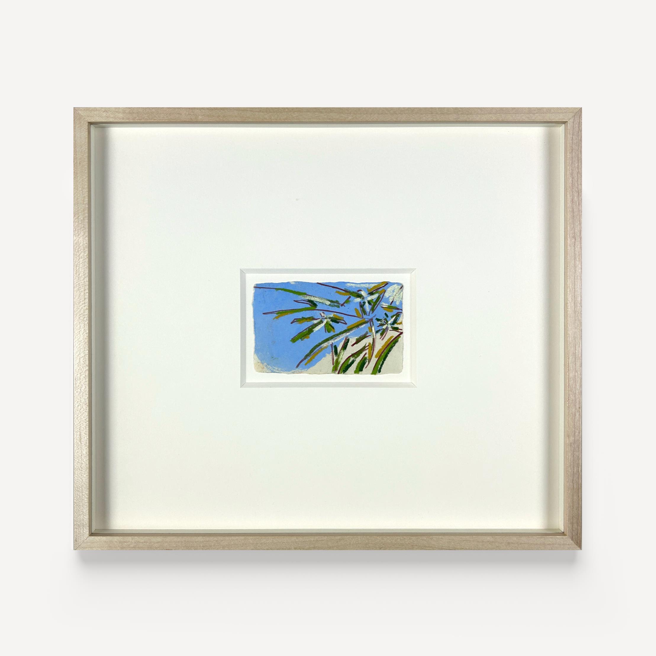 Presented float mounted on pale blue linen, set within a natural finish walnut box frame, glazed with UV filtering anti-reflective glass