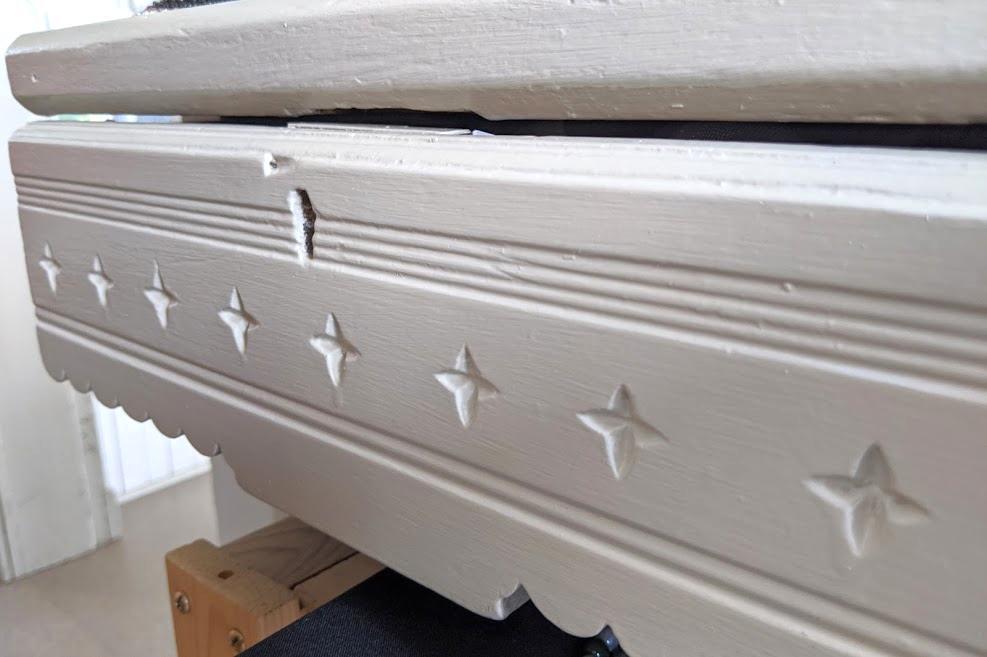 Note that all three ticket drawers have different exterior wood markings/designs.