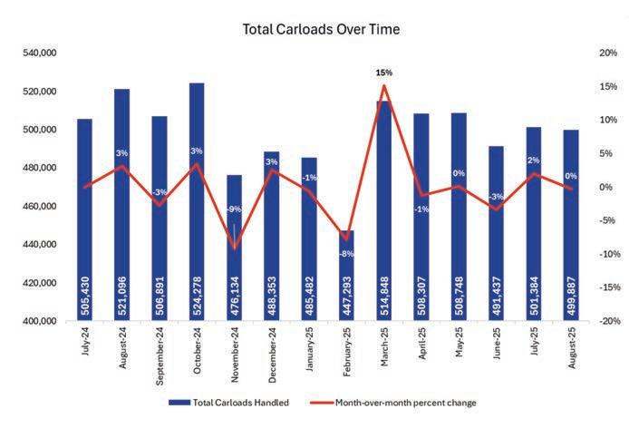 “Rail traffic volumes continue to adjust to evolving market conditions. In September 2025, total U.S. rail carloads fell 1.2% year-over-year, with 12 of the 20 major carload categories tracked by the AAR posting declines. However, several key industrial commodities—including metal products, autos and parts, metallic ores, and stone and glass products—saw gains.