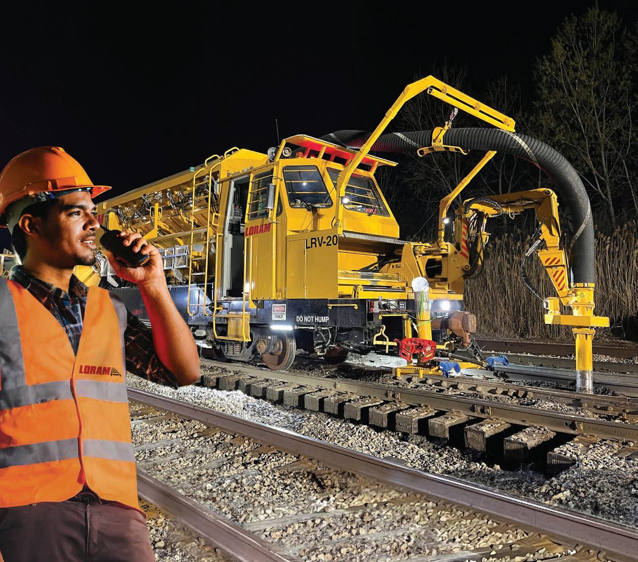 Optional attachments include a generalpurpose bucket, rotating tie head, tamper head, forks and a cold air blower, “giving contractors the flexibility to configure the GlideRail for nearly any rail application,” says RCE, which also announced a partnership with GKD in 2025 that includes technology features added to the company’s Railavator machine lineup: enhanced vision systems, height and slew settings, and obstacle detection. This technology, RCE says, “helps with safety initiatives on the tracks.”