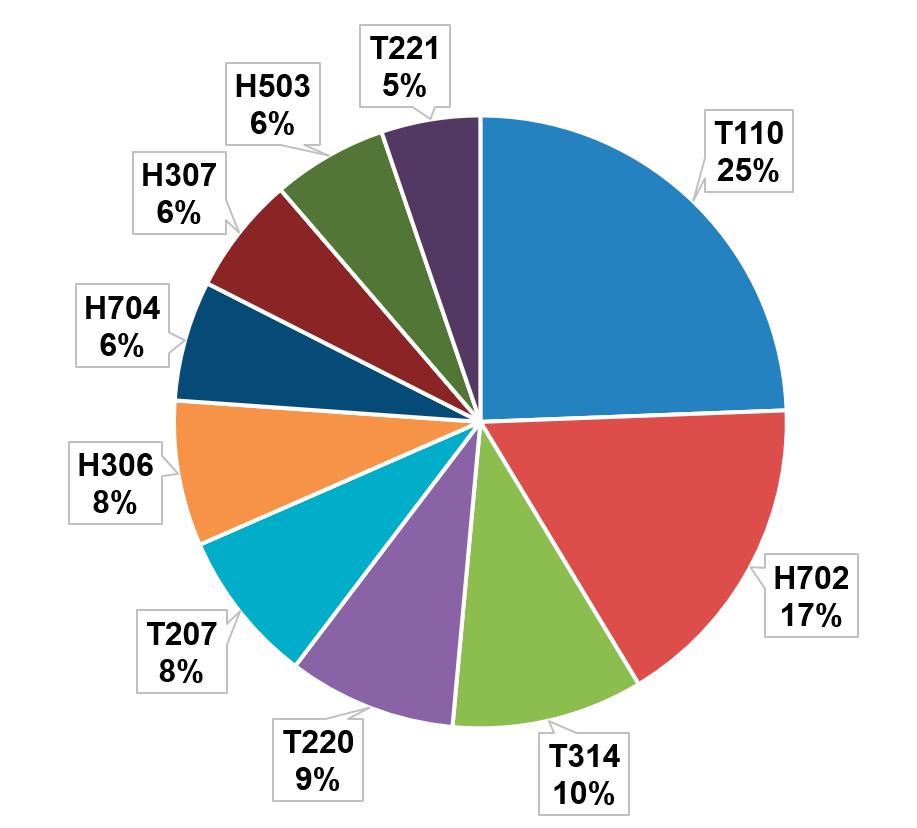 As Figure 1 illustrates, wear performance generally trends with RCF performance. The rail profile performance was sorted for its wear performance, which is shown in Figure 4. The overall shape of the graph will be similar, whether sorting the rail profiles for RCF or for wear; thus, the same observations that were made for RCF hold true for the wear performance.
