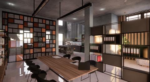 本次的基地我們選在台中市西屯區,原為一棟三層連棟住宅建築,屋主將其原本30幾年 的住宅改造成室內設計辦公室。